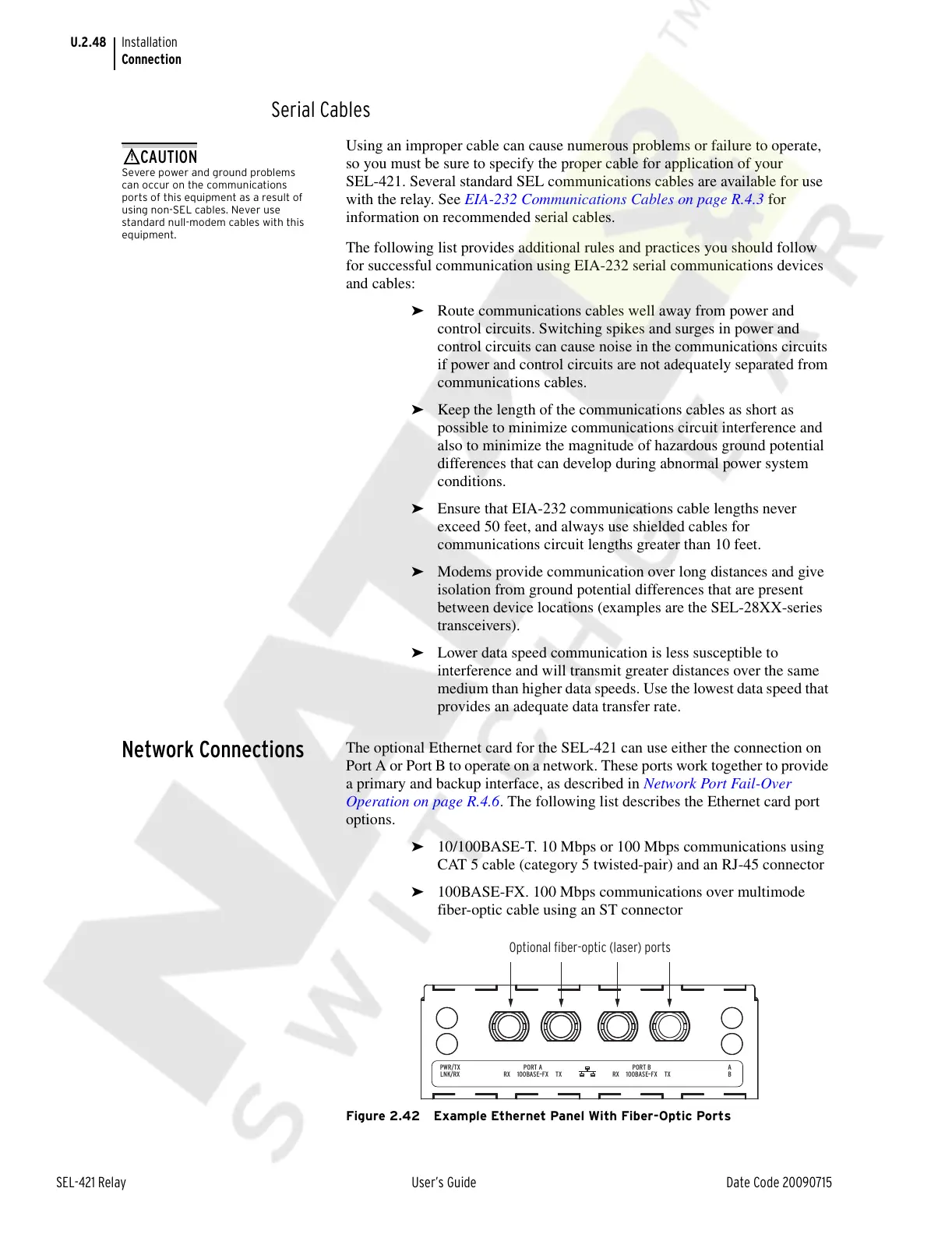 The optional Ethernet card for the SEL-421 can use either the connection on