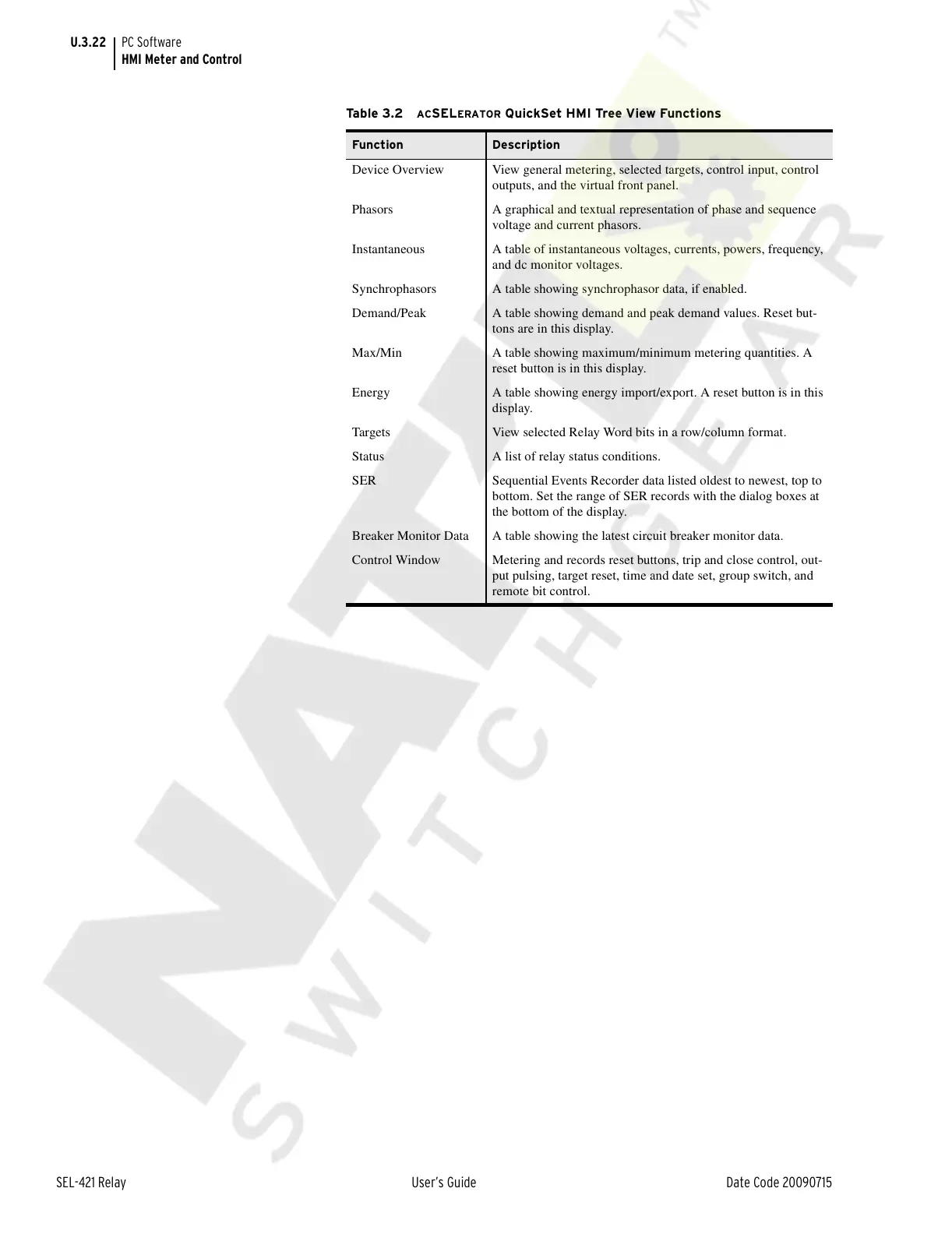 Ta b l e 3 .2 ACSELERATOR QuickSet HMI Tree View Functions