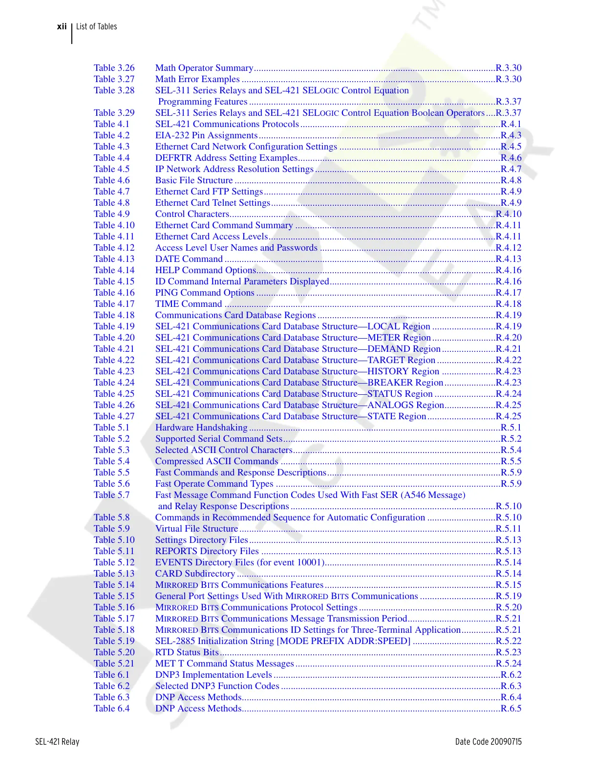 Table 4.1 SEL-421 Communications Protocols..................................................................................R.4.1