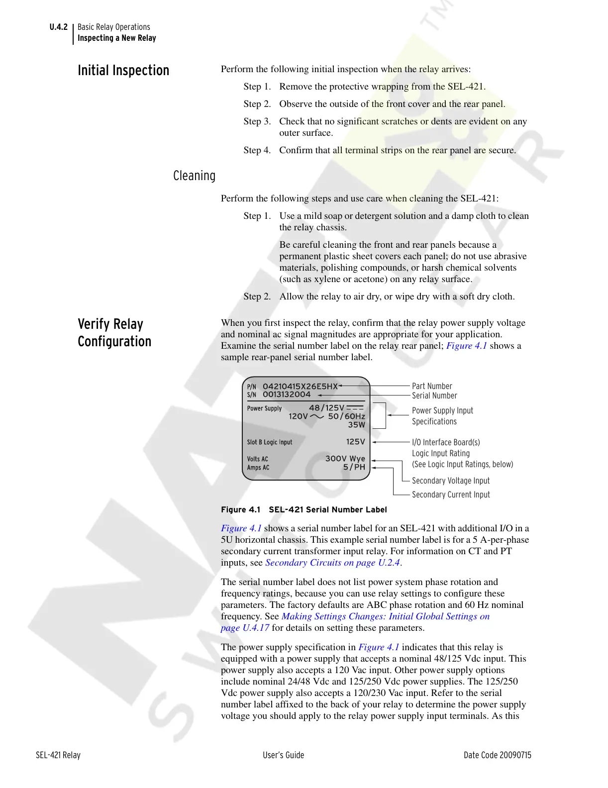 Examine the serial number label on the relay rear panel; Figure 4.1 shows a
