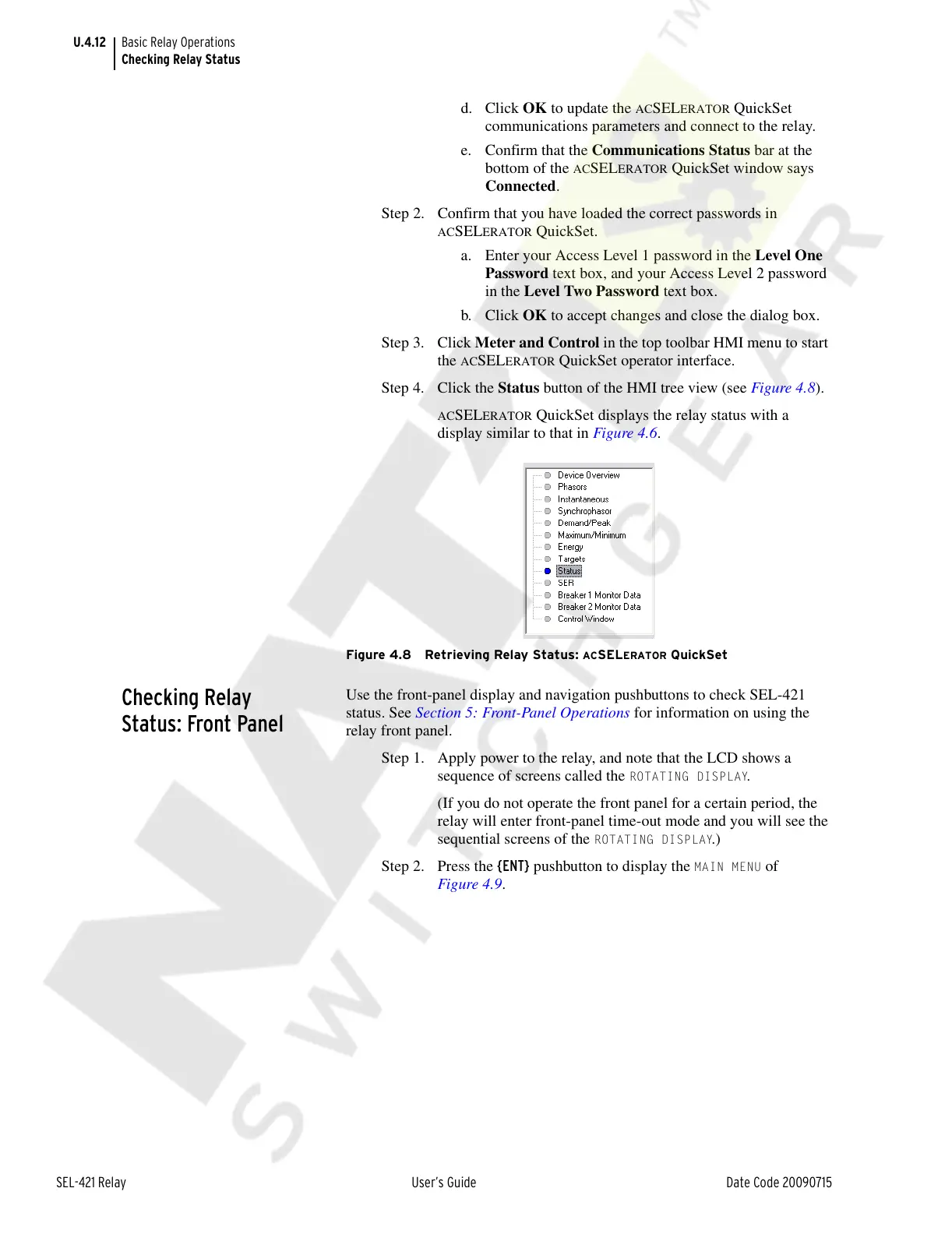 Figure 4.8 Retrieving Relay Status: ACSELERATOR QuickSet