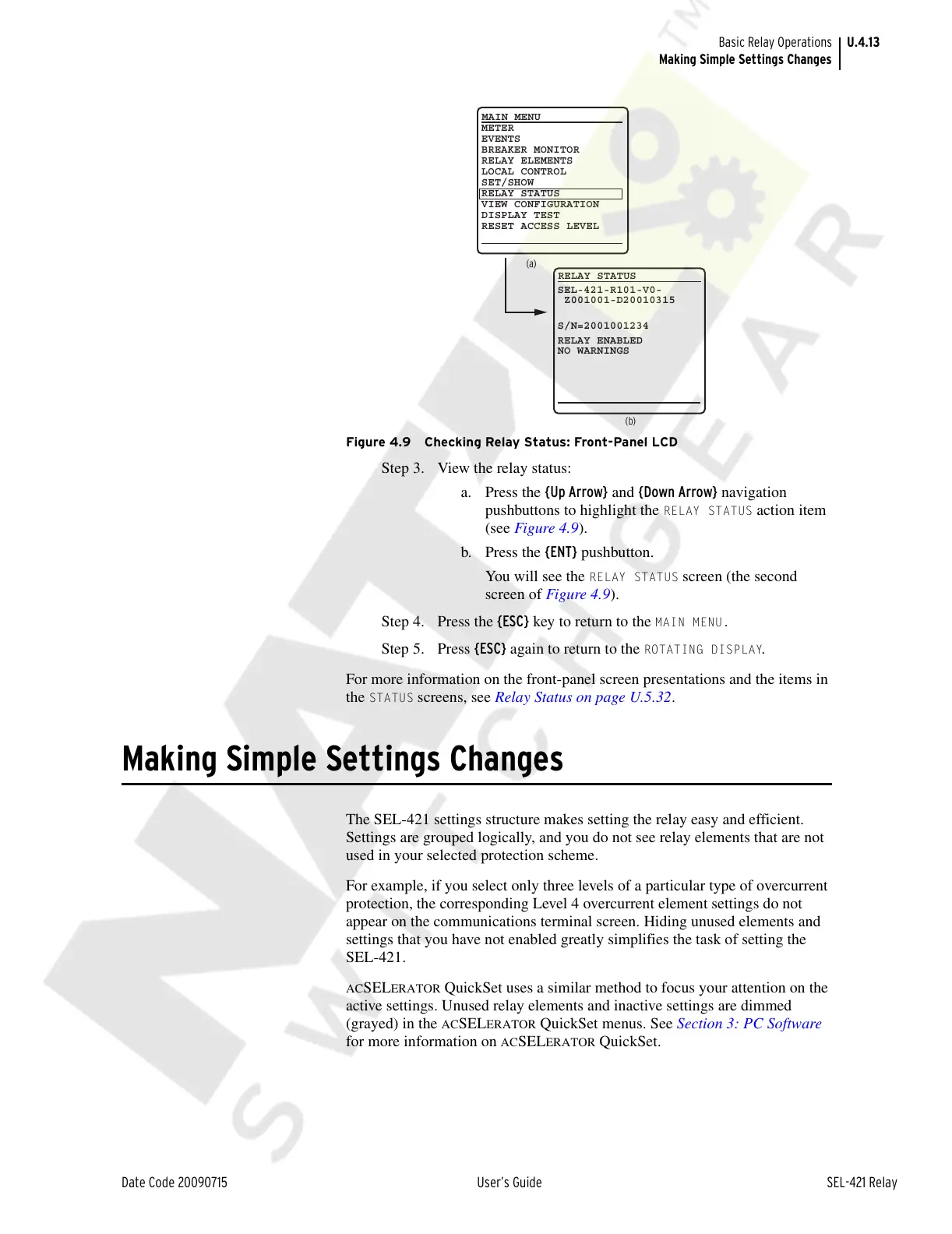 Figure 4.9 Checking Relay Status: Front-Panel LCD