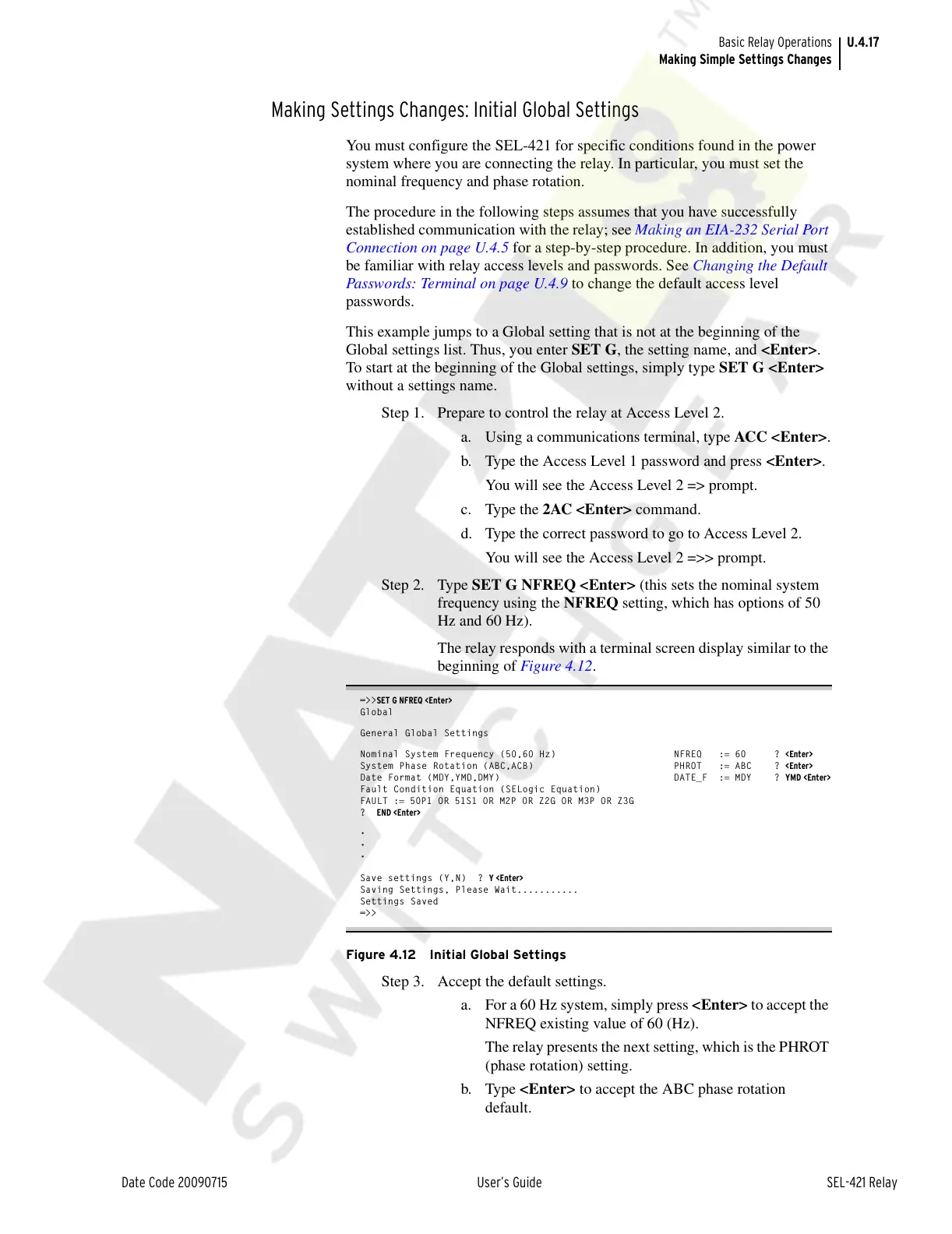 Step 2. Type SET G NFREQ <Enter> (this sets the nominal system