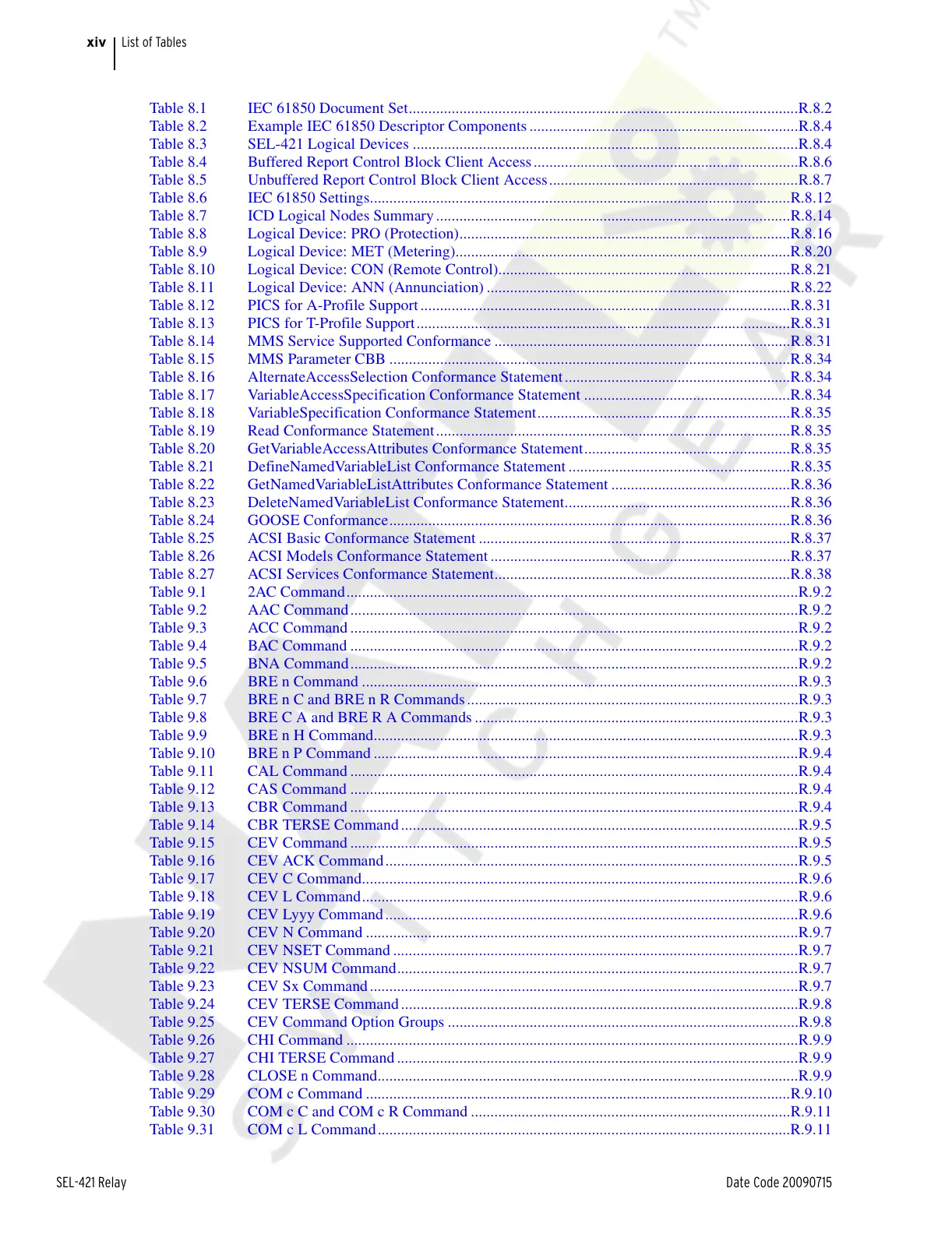 Table 8.3 SEL-421 Logical Devices ...................................................................................................R.8.4