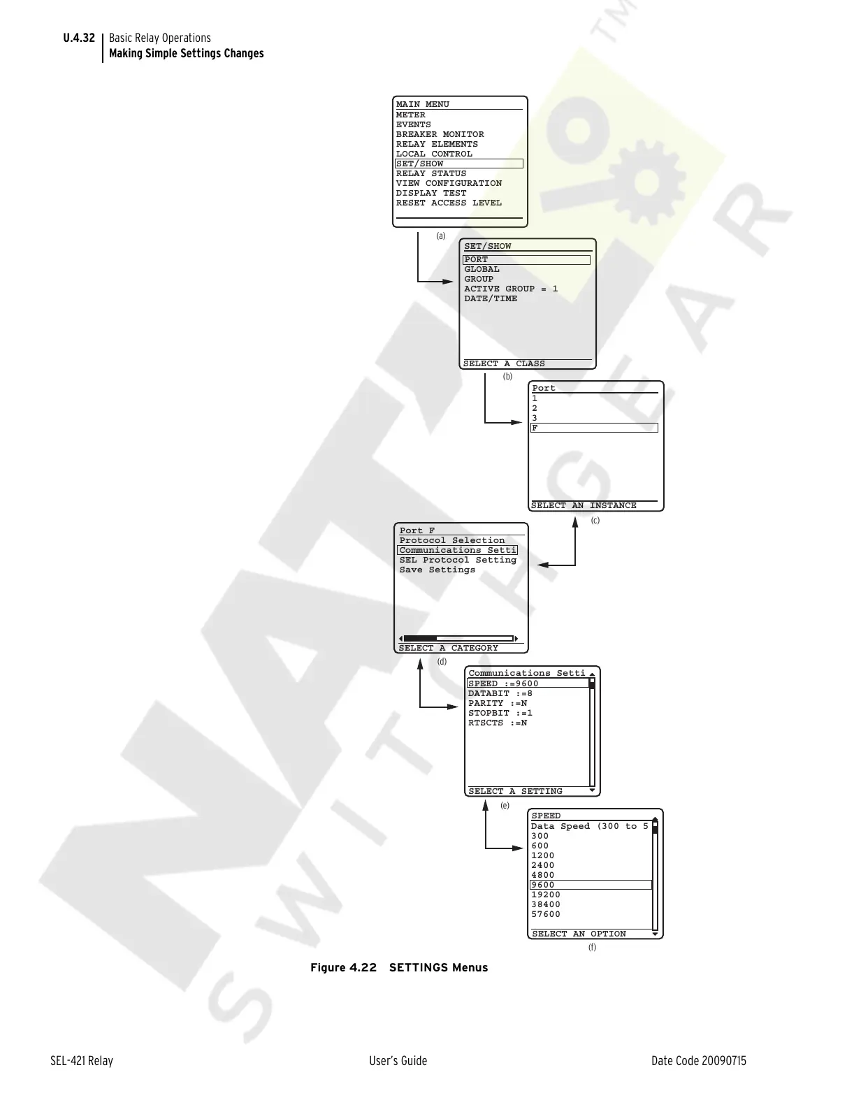Sel 421 - Figure 4.22 SETTINGS Menus