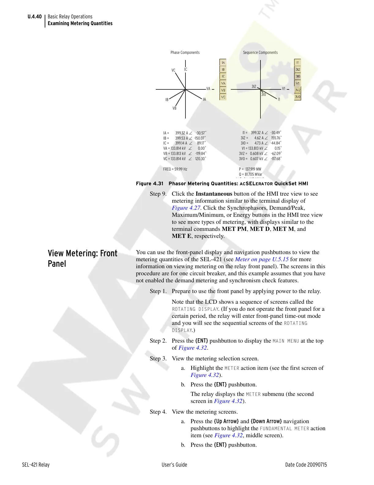 metering quantities of the SEL-421 (see Meter on page U.5.15 for more