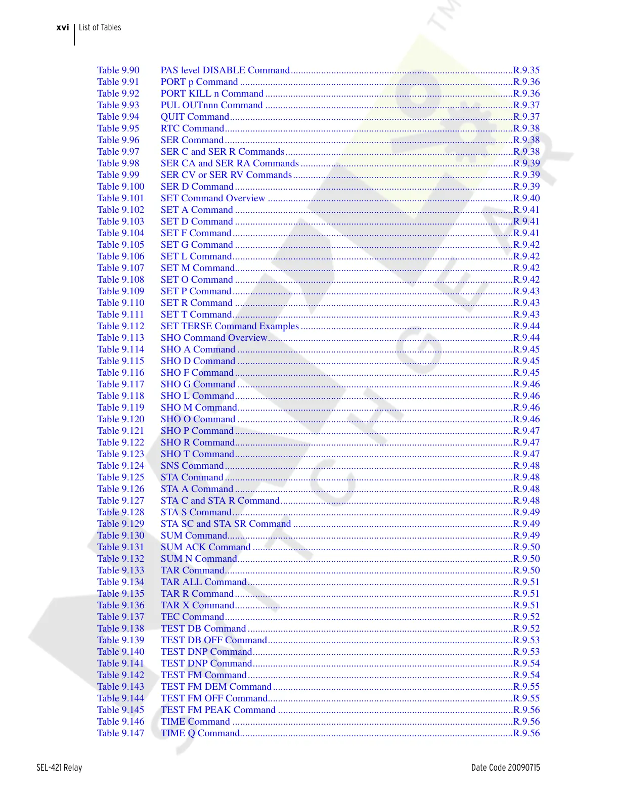 Table 9.97 SER C and SER R Commands..........................................................................................R.9.38