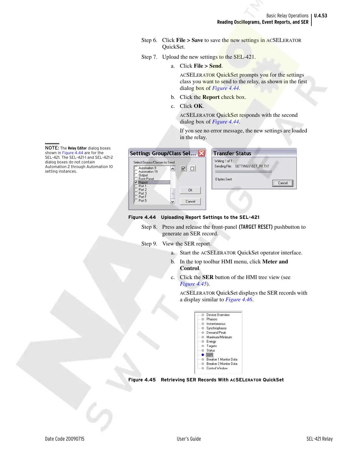 Figure 4.44 Uploading Report Settings to the SEL-421