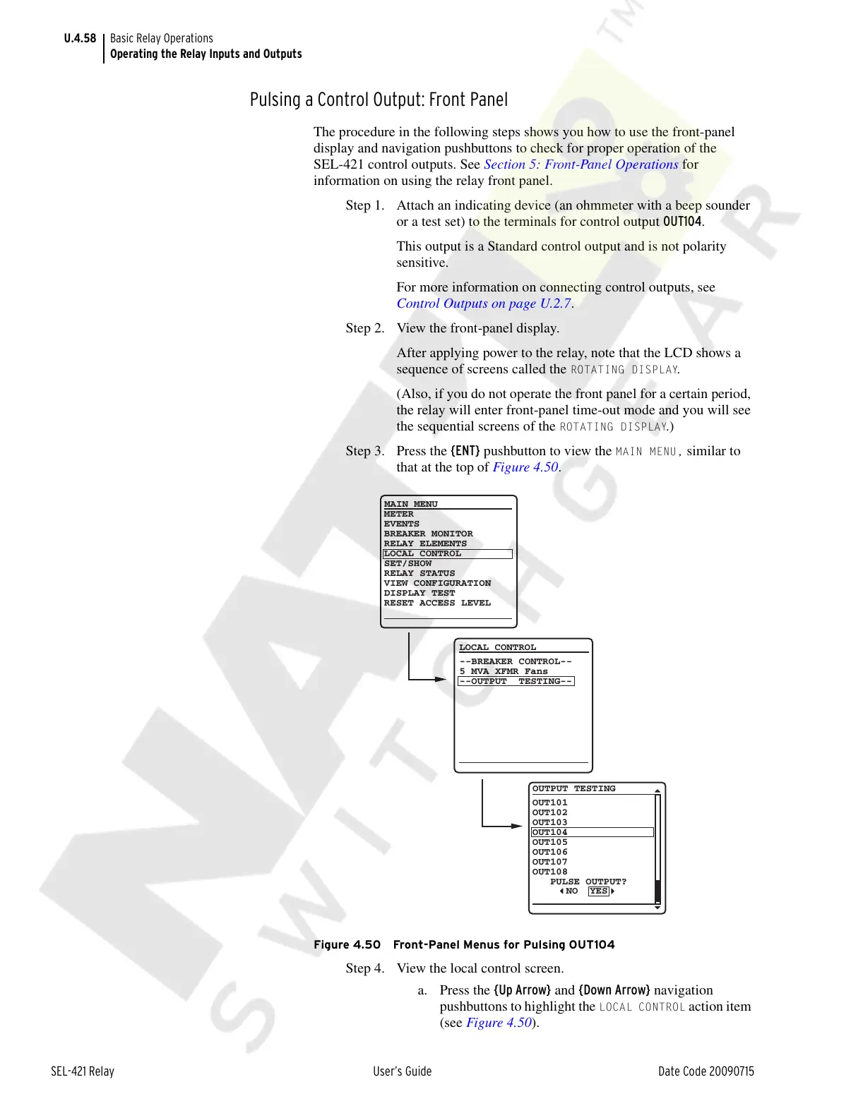 SEL-421 control outputs. See Section 5: Front-Panel Operations for