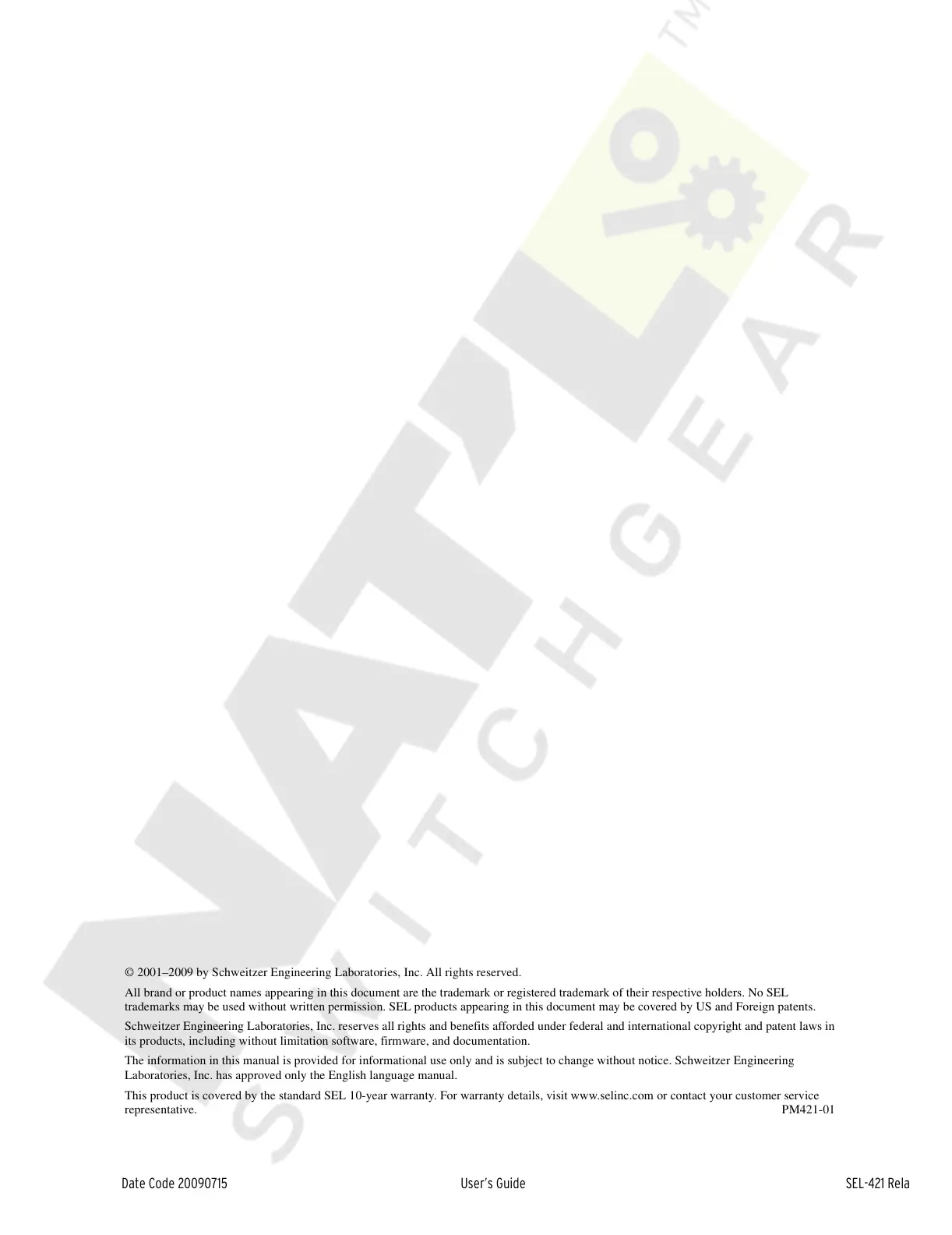 © 2001–2009 by Schweitzer Engineering Laboratories, Inc. All rights reserved.