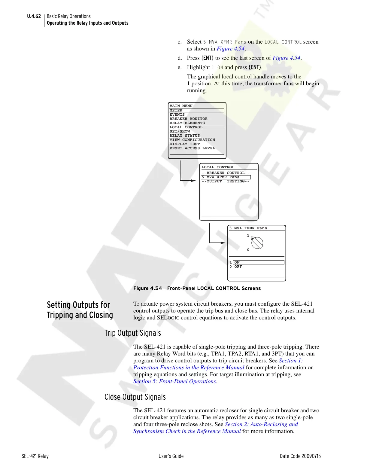 program to drive control outputs to trip circuit breakers. See Section 1: