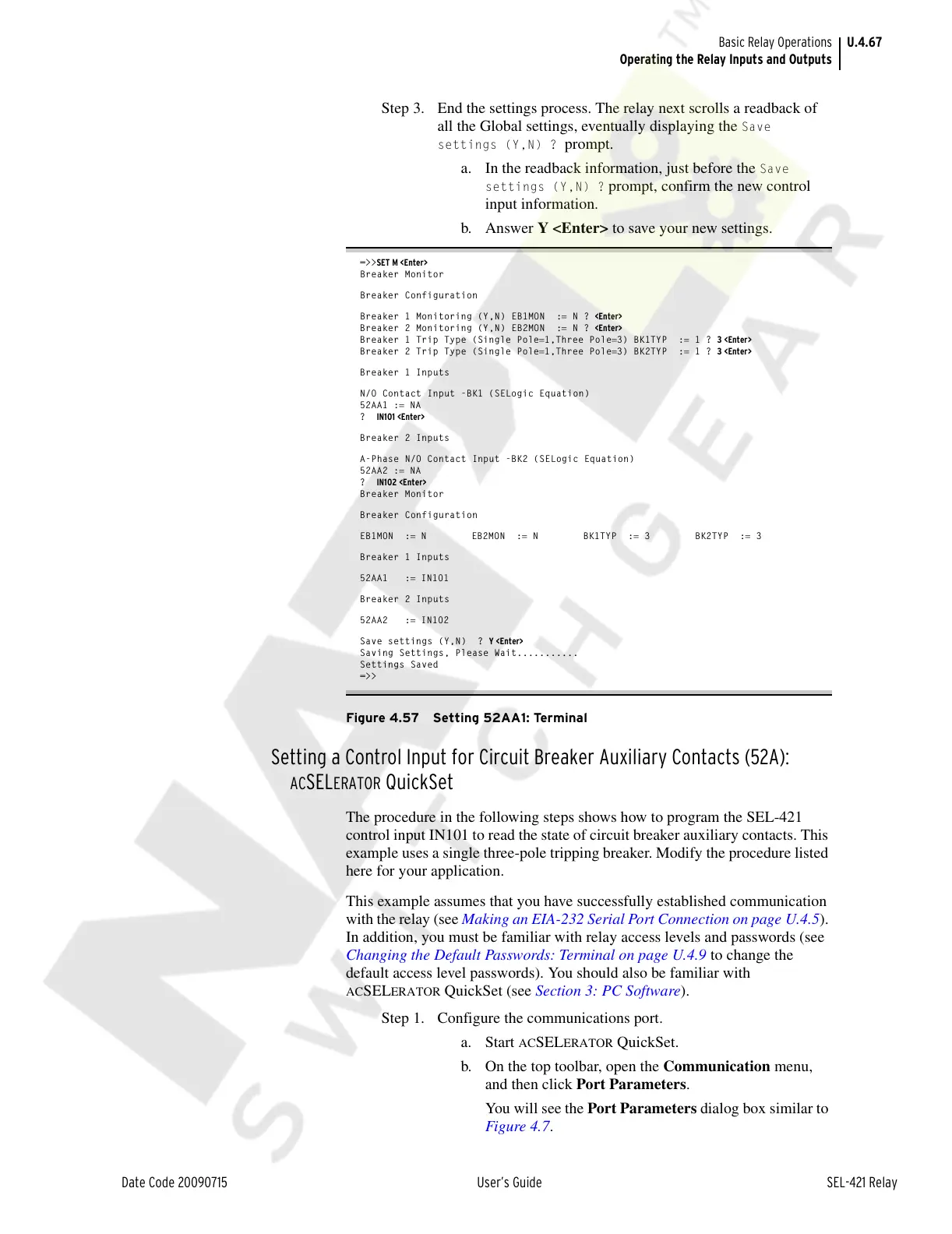 Breaker 1 Monitoring (Y,N) EB1MON := N ? <Enter>
