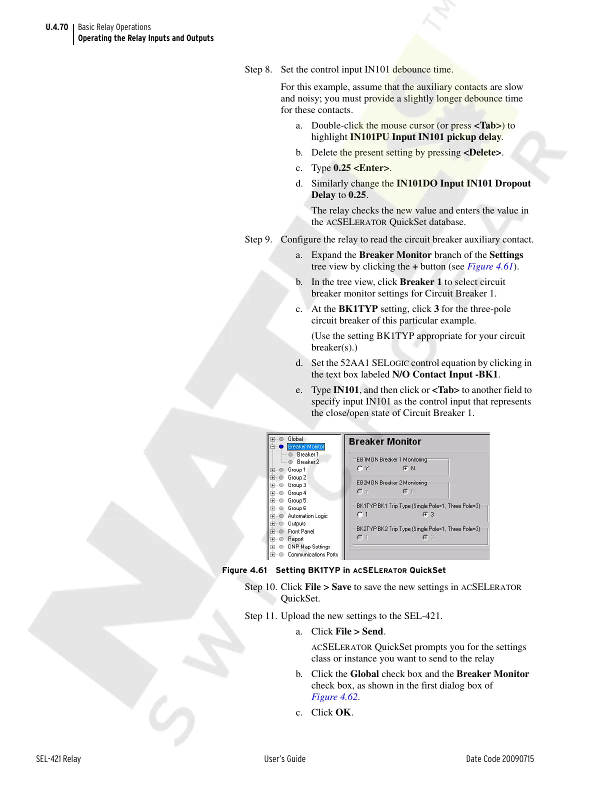 Step 9. Configure the relay to read the circuit breaker auxiliary contact.