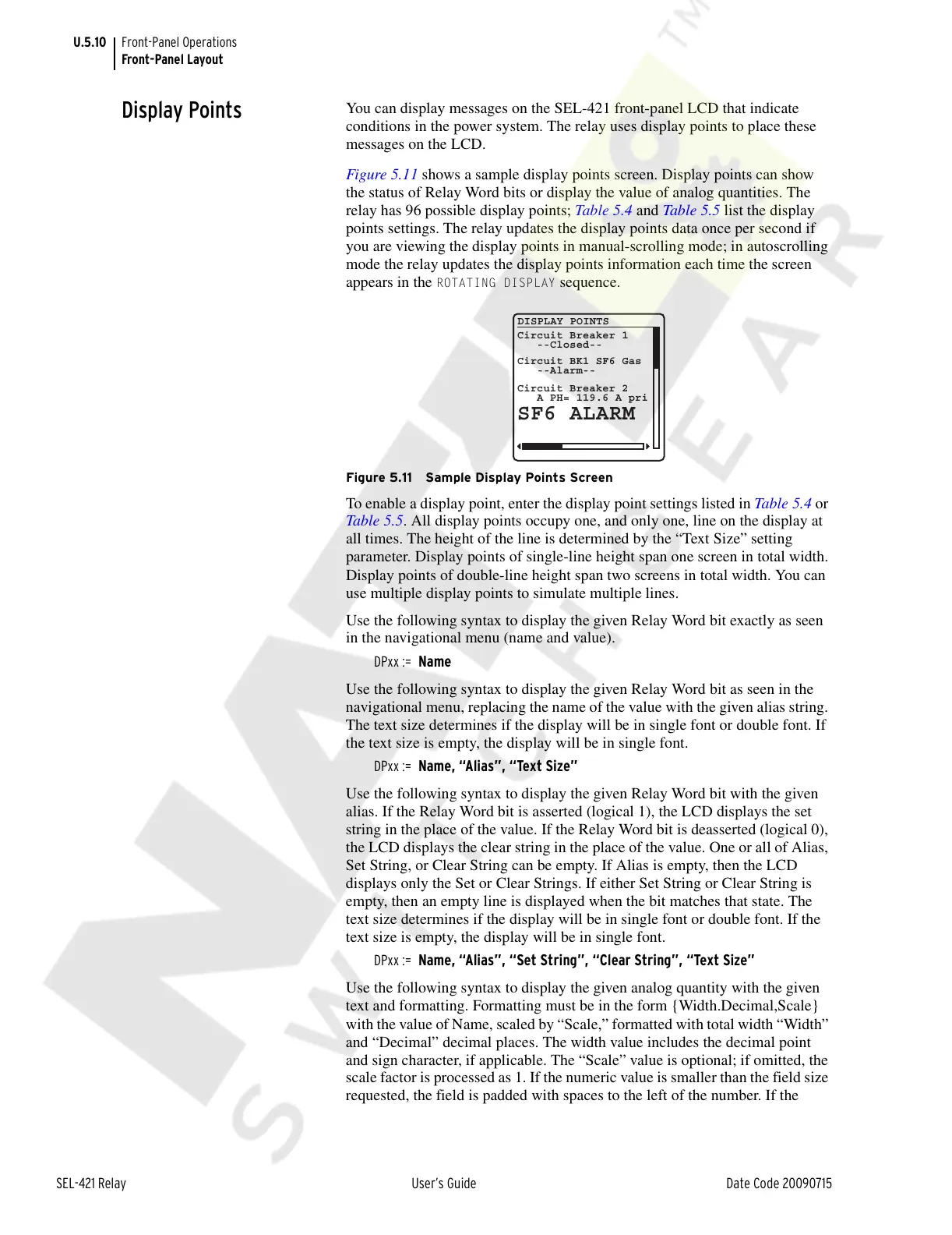 relay has 96 possible display points; Tab le 5.4 and Table 5.5 list the display