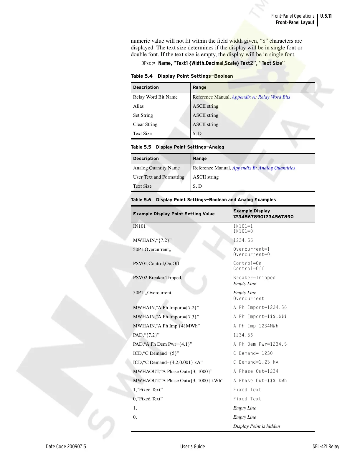 Table 5.6 Display Point Settings—Boolean and Analog Examples