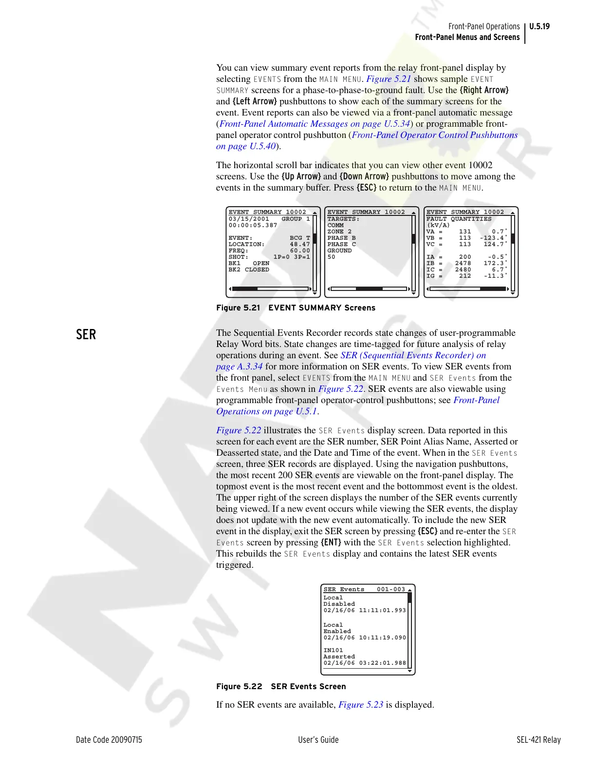 Events Menu as shown in Figure 5.22. SER events are also viewable using