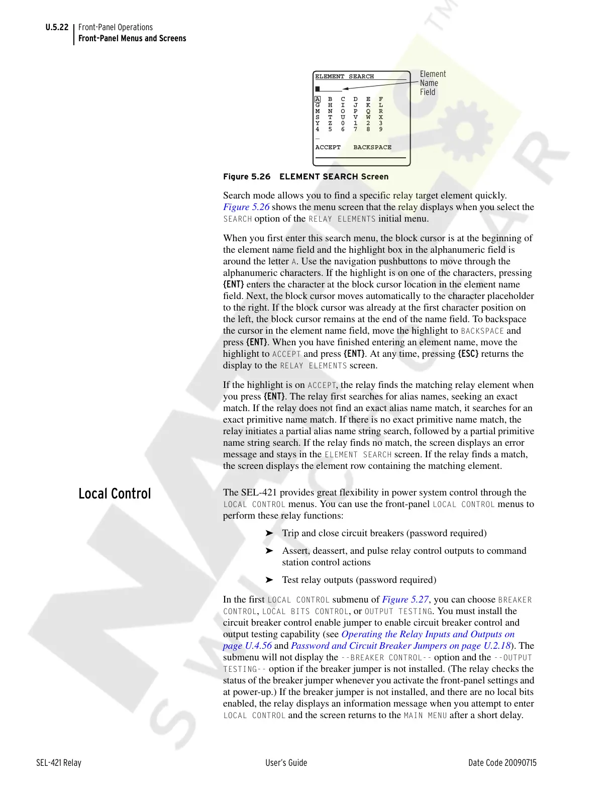Figure 5.26 shows the menu screen that the relay displays when you select the
