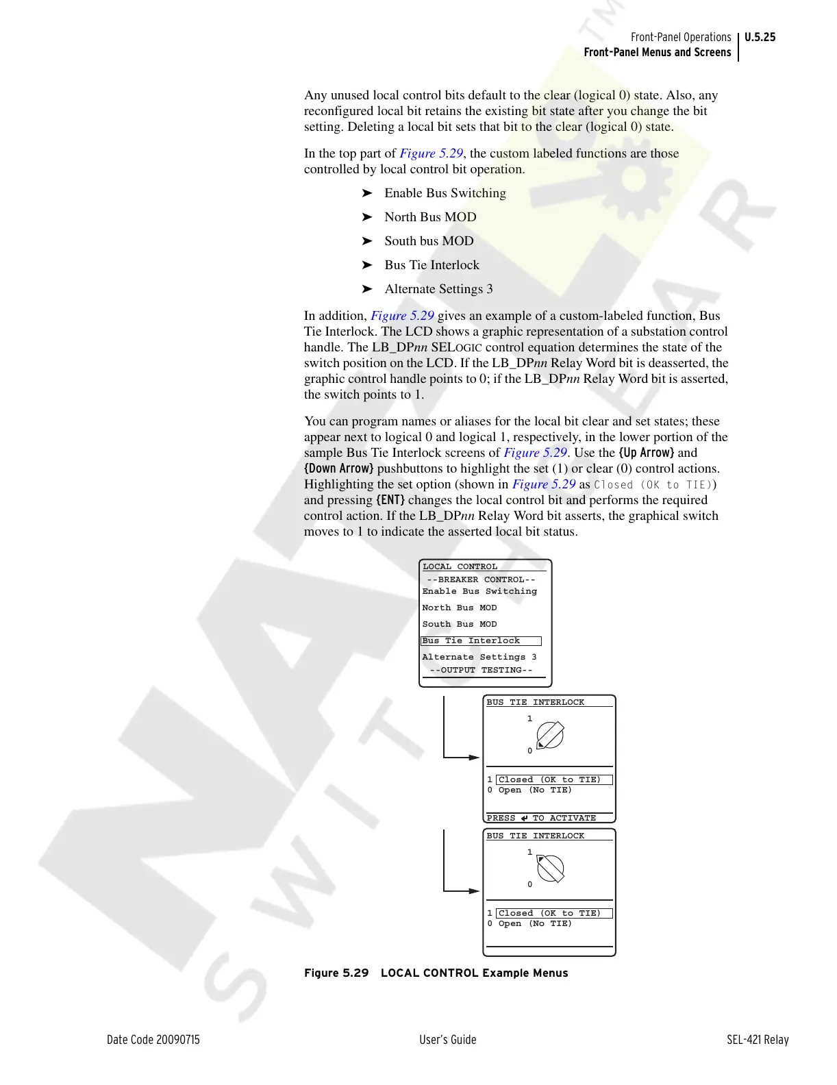 sample Bus Tie Interlock screens of Figure 5.29. Use the {Up Arrow} and