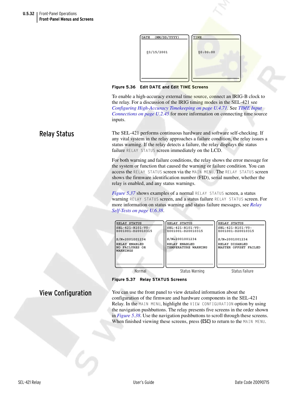 the relay. For a discussion of the IRIG timing modes in the SEL-421 see
