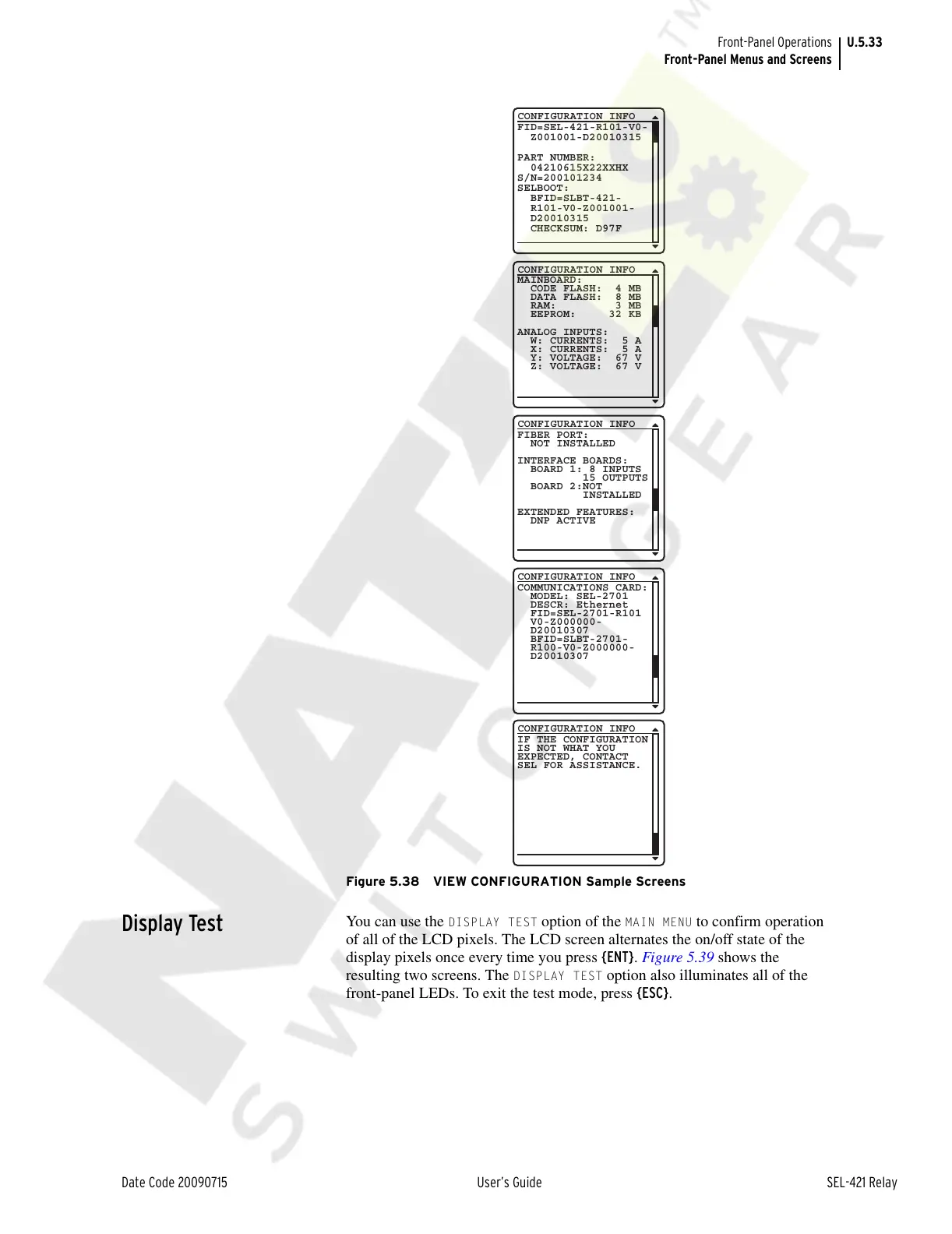 Figure 5.38 VIEW CONFIGURATION Sample Screens