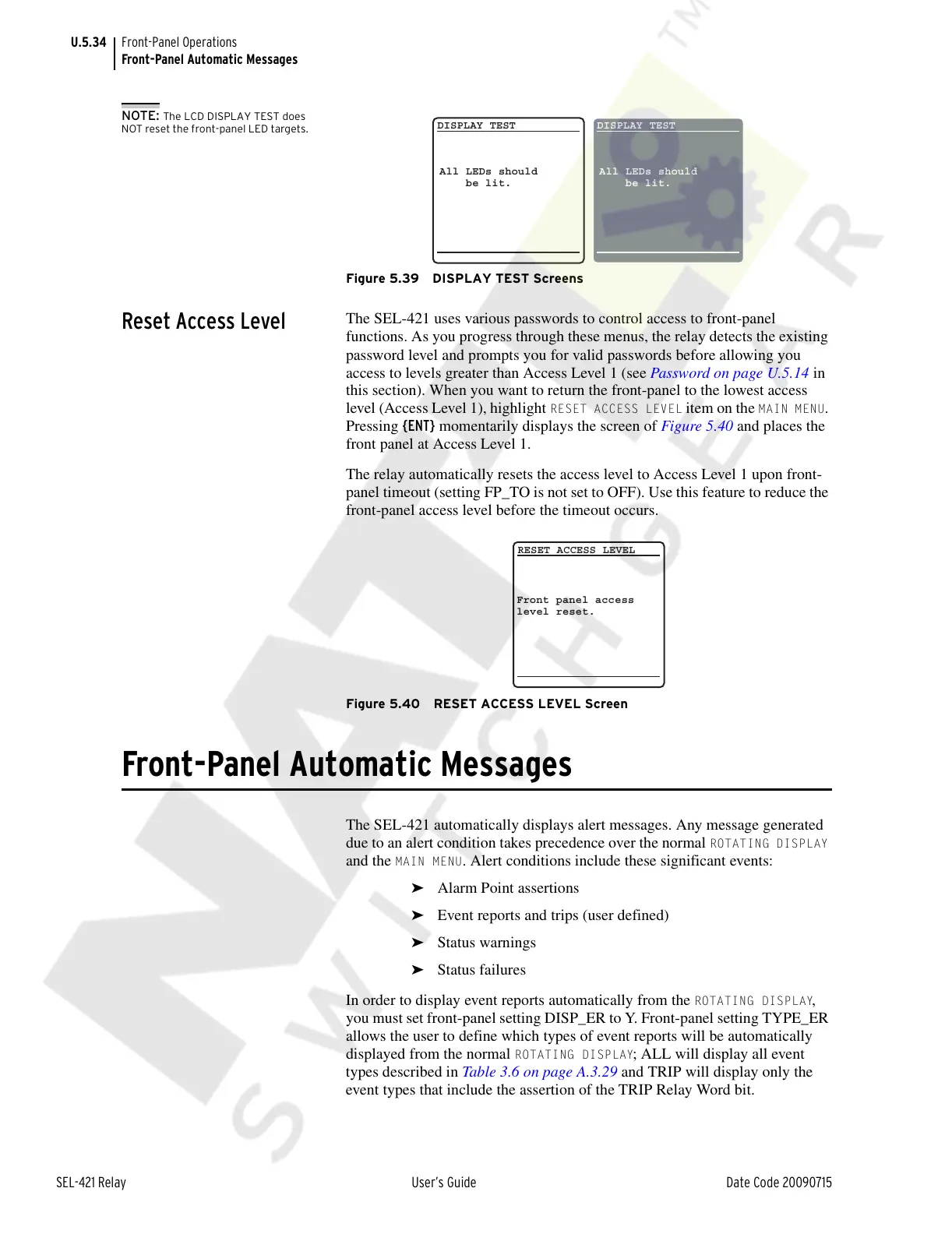Figure 5.40 RESET ACCESS LEVEL Screen