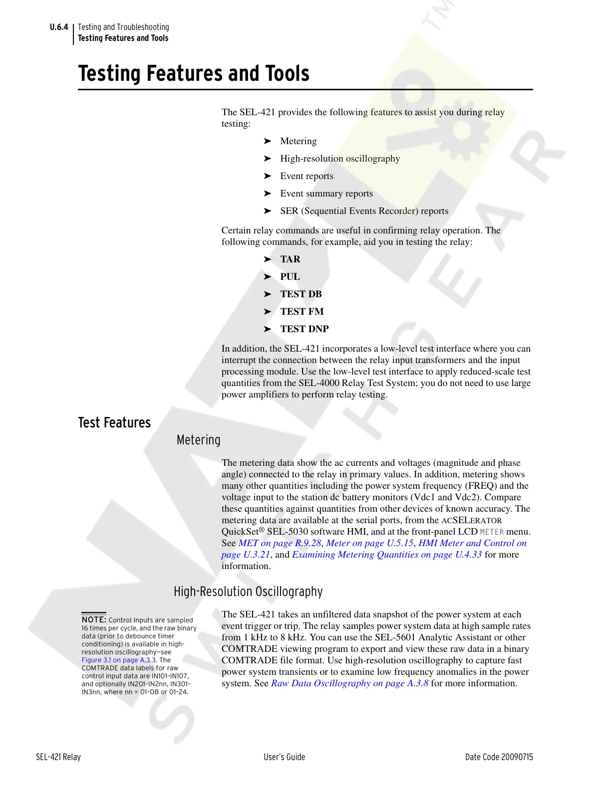 In addition, the SEL-421 incorporates a low-level test interface where you can
