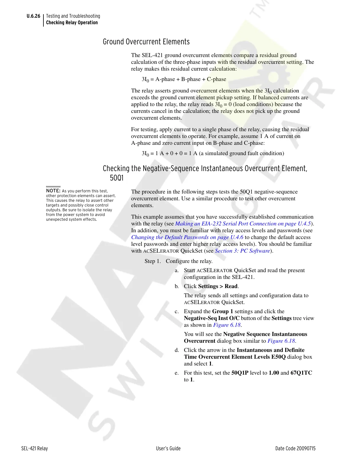 The procedure in the following steps tests the 50Q1 negative-sequence