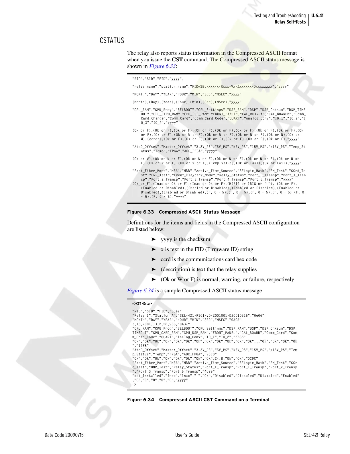 Figure 6.34 is a sample Compressed ASCII status message.