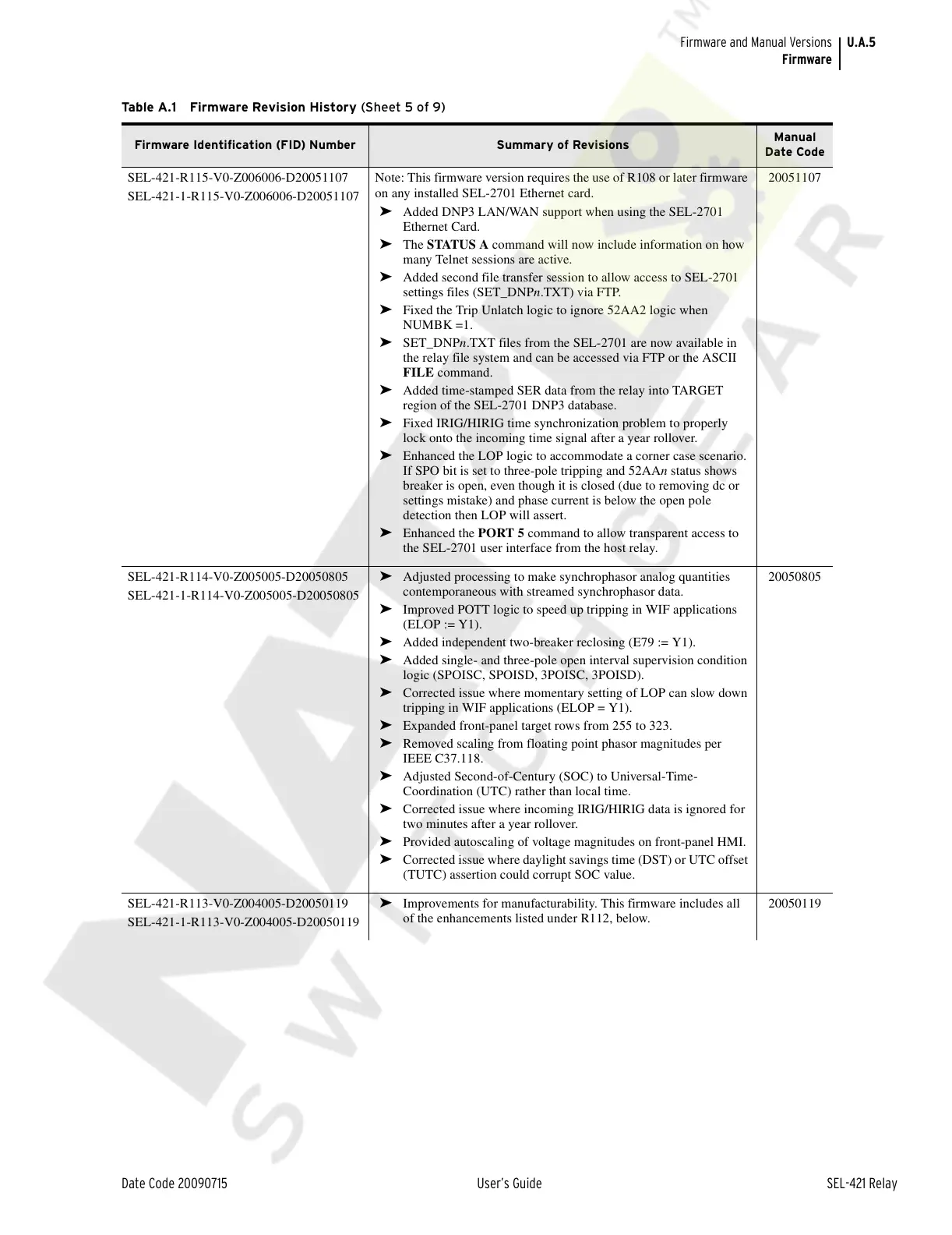SEL-421-R114-V0-Z005005-D20050805