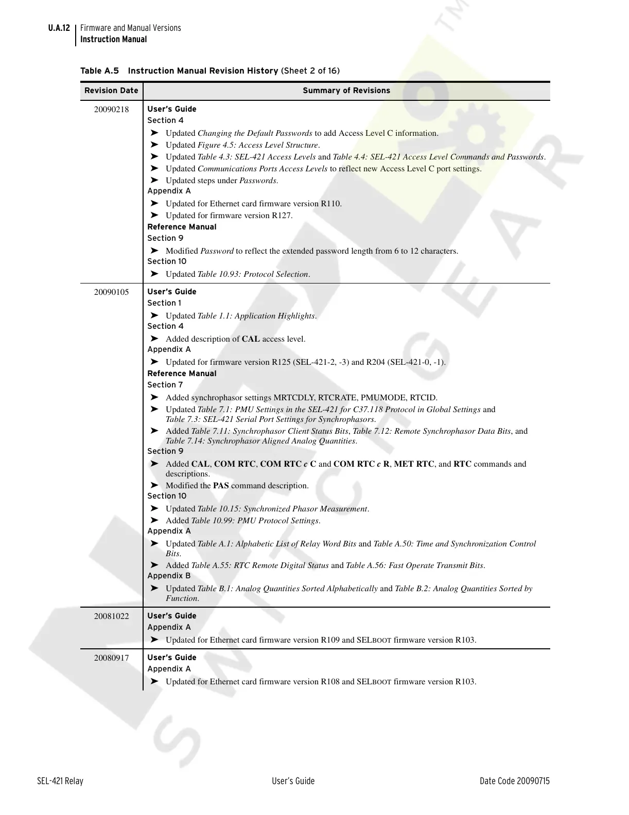 Table A.5 Instruction Manual Revision History (Sheet 2 of 16)