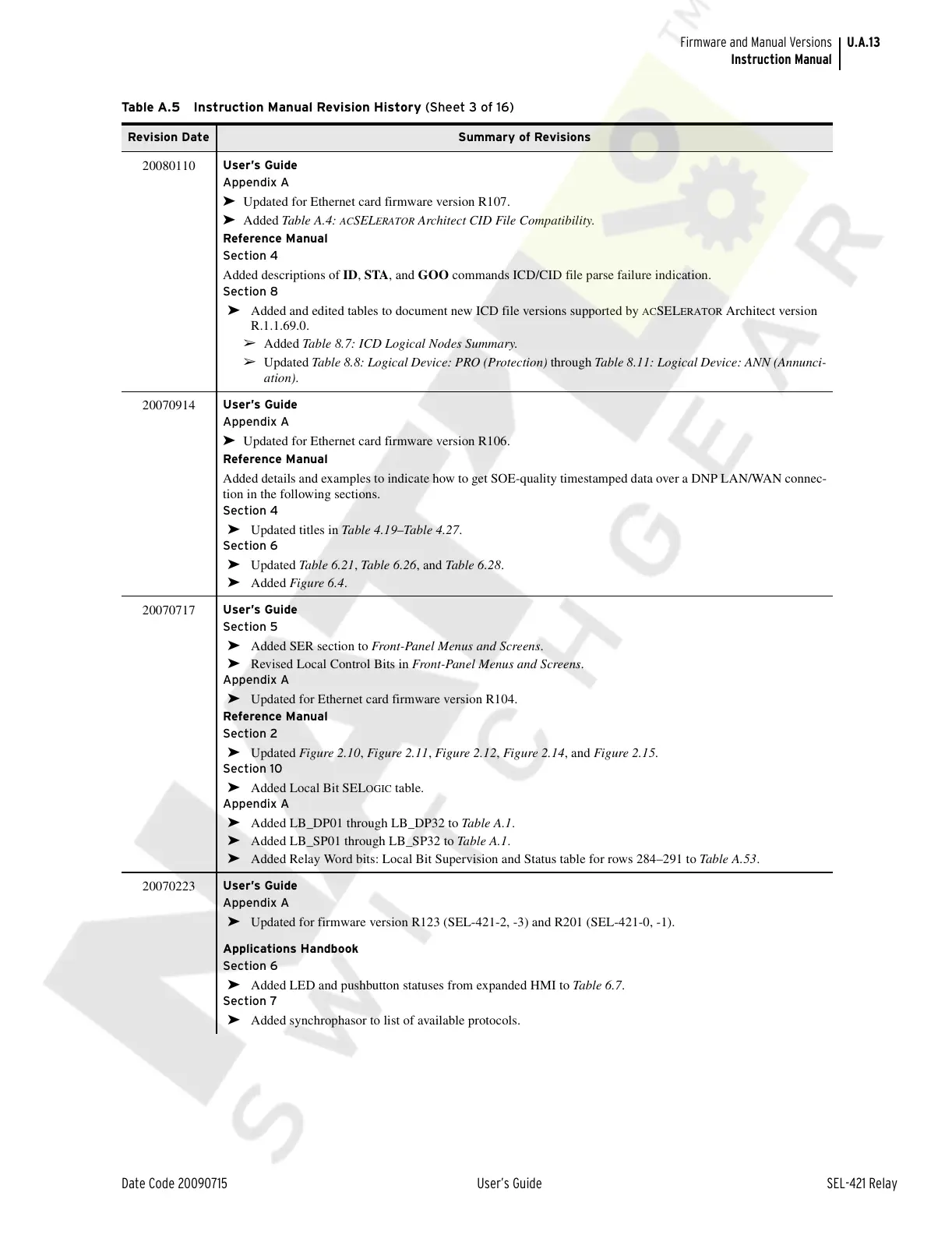 ➤ Updated for firmware version R123 (SEL-421-2, -3) and R201 (SEL-421-0, -1).