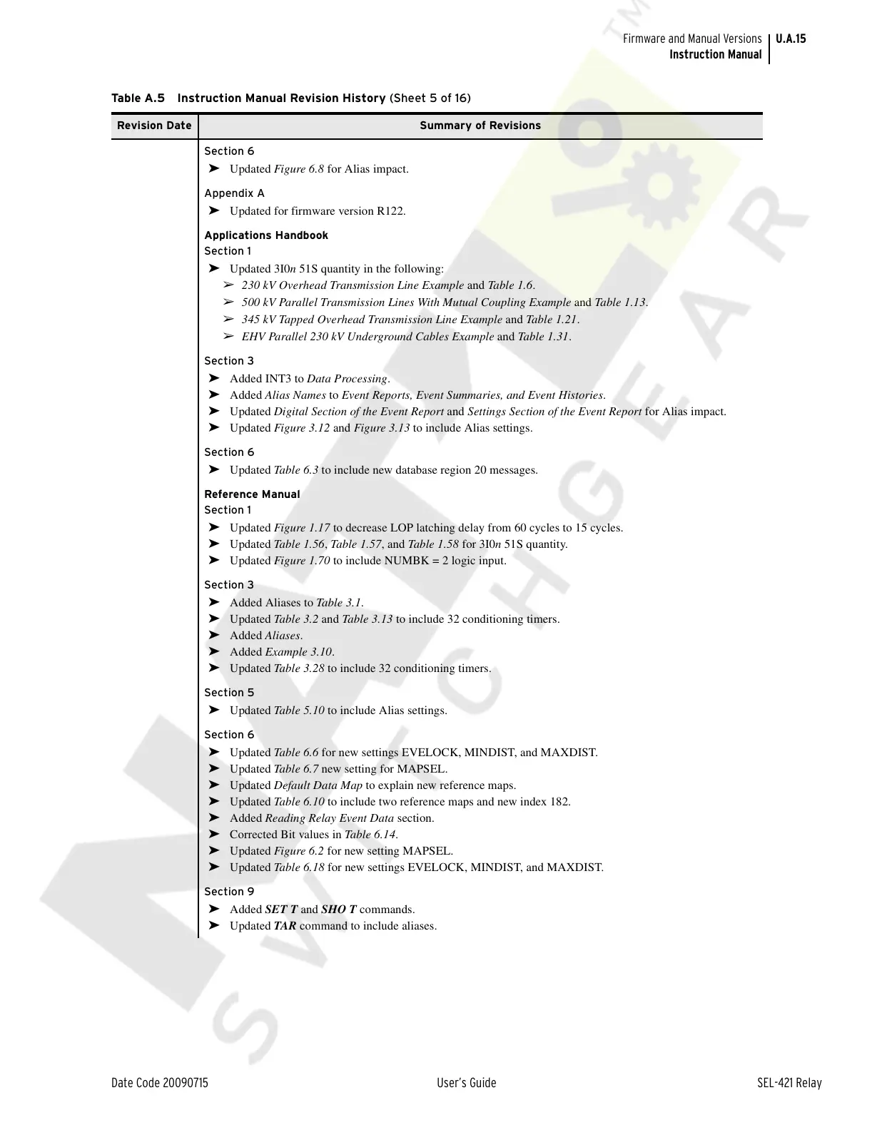 Table A.5 Instruction Manual Revision History (Sheet 5 of 16)