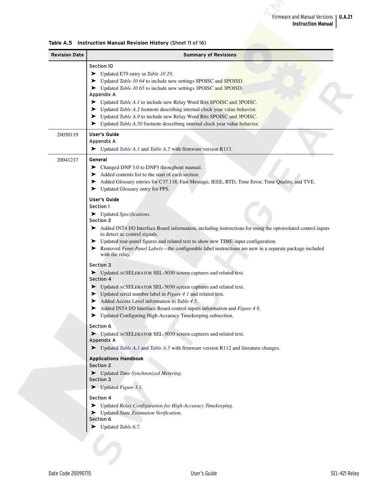 Table A.5 Instruction Manual Revision History (Sheet 11 of 16)