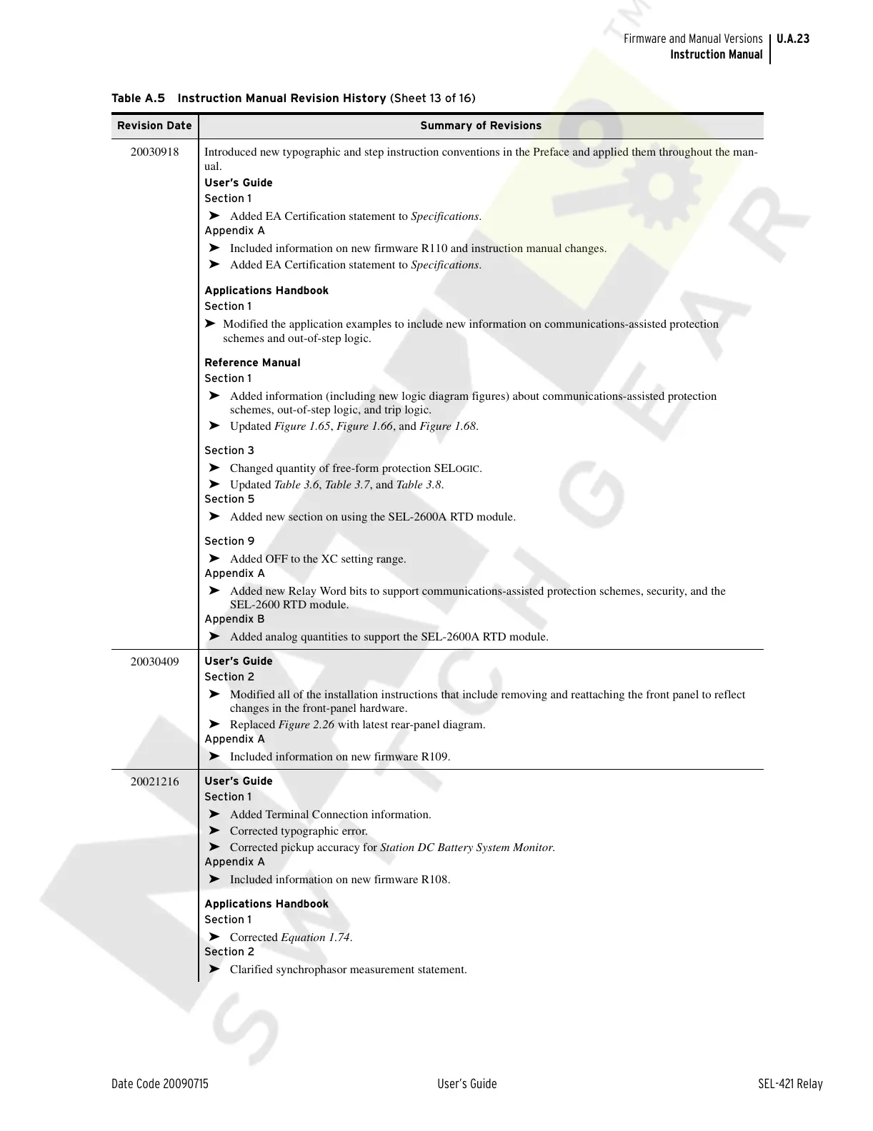 Table A.5 Instruction Manual Revision History (Sheet 13 of 16)