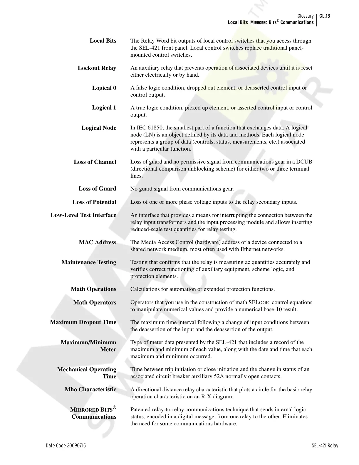 Date Code 20090715 SEL-421 Relay