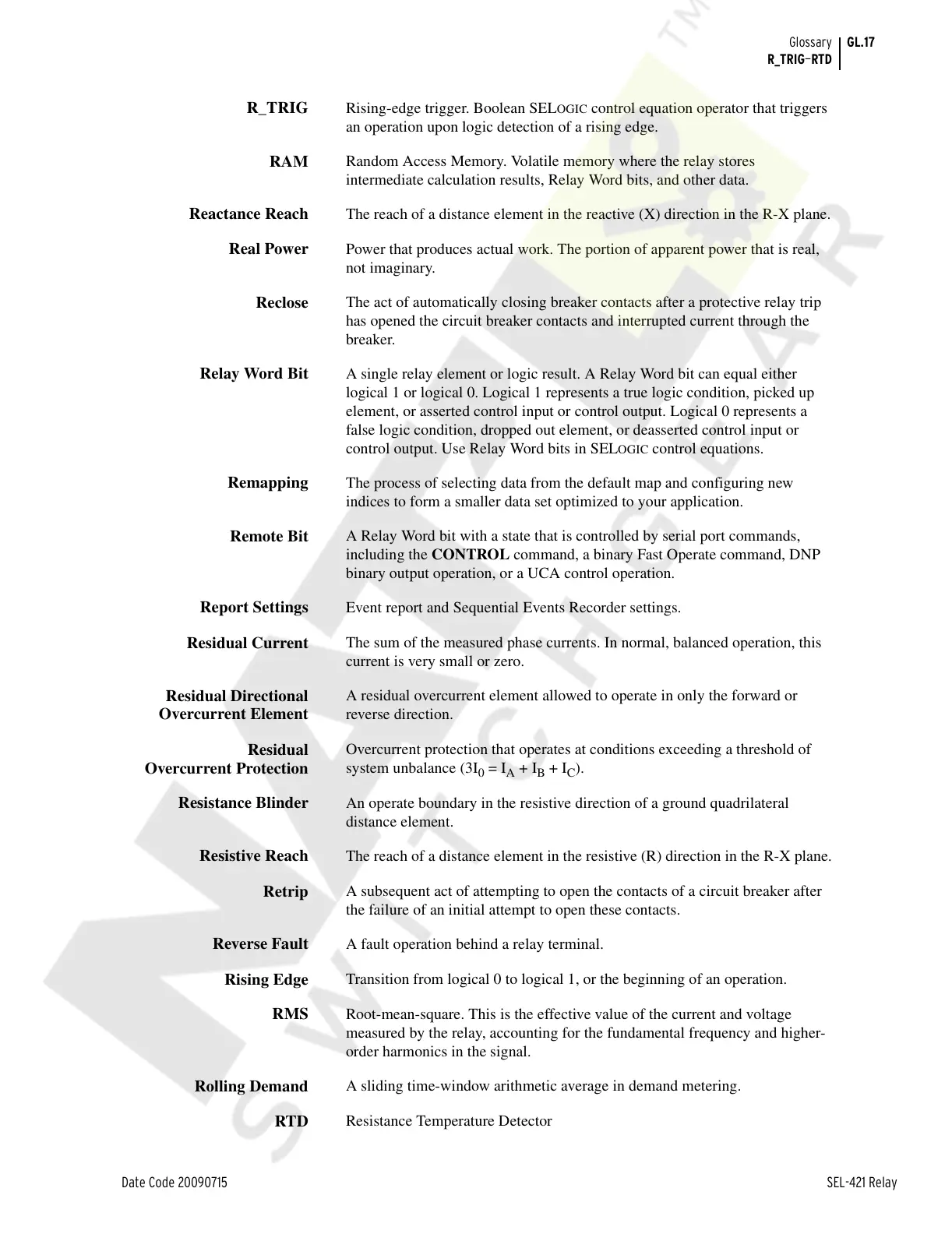 Date Code 20090715 SEL-421 Relay