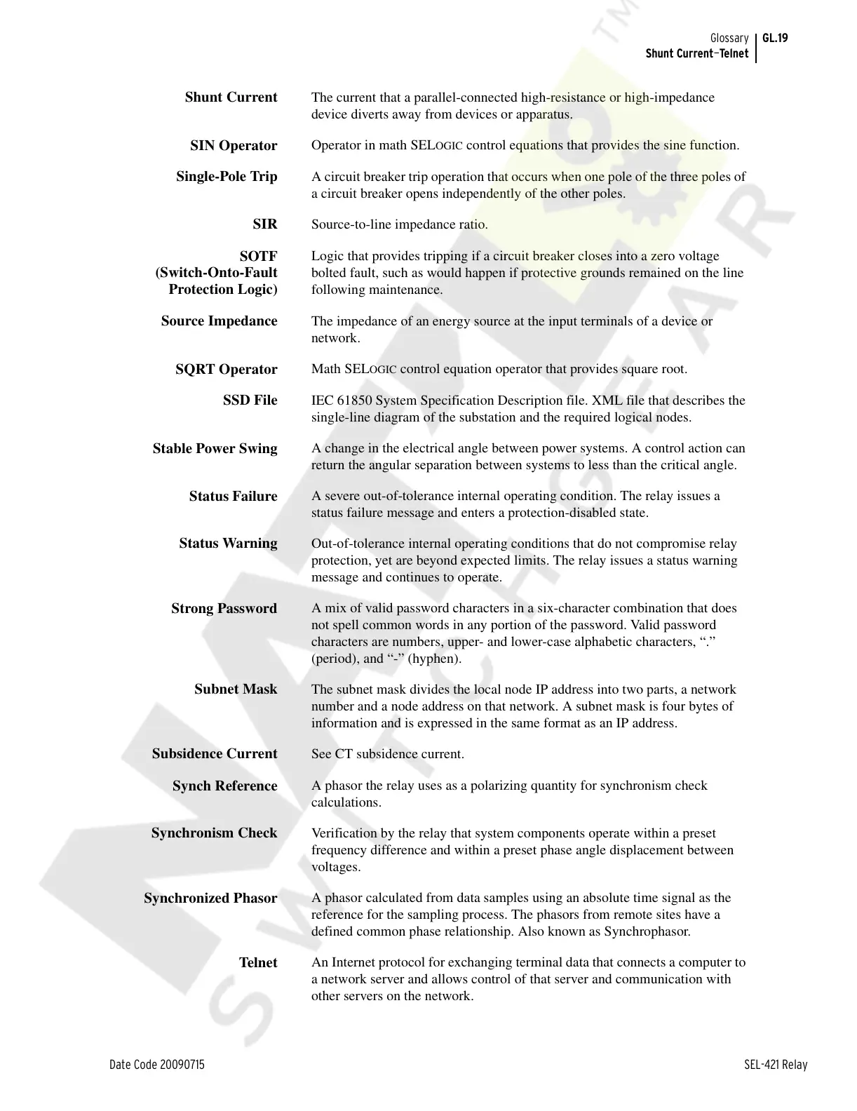 Date Code 20090715 SEL-421 Relay