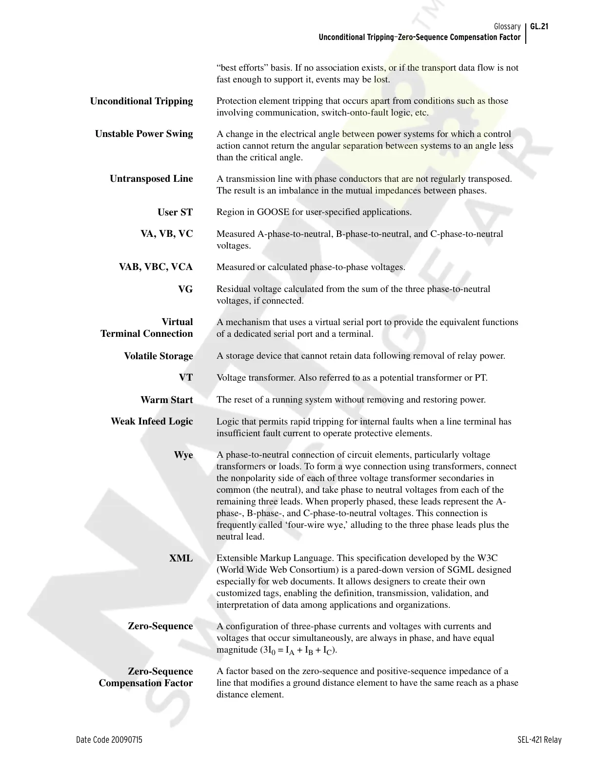 Date Code 20090715 SEL-421 Relay