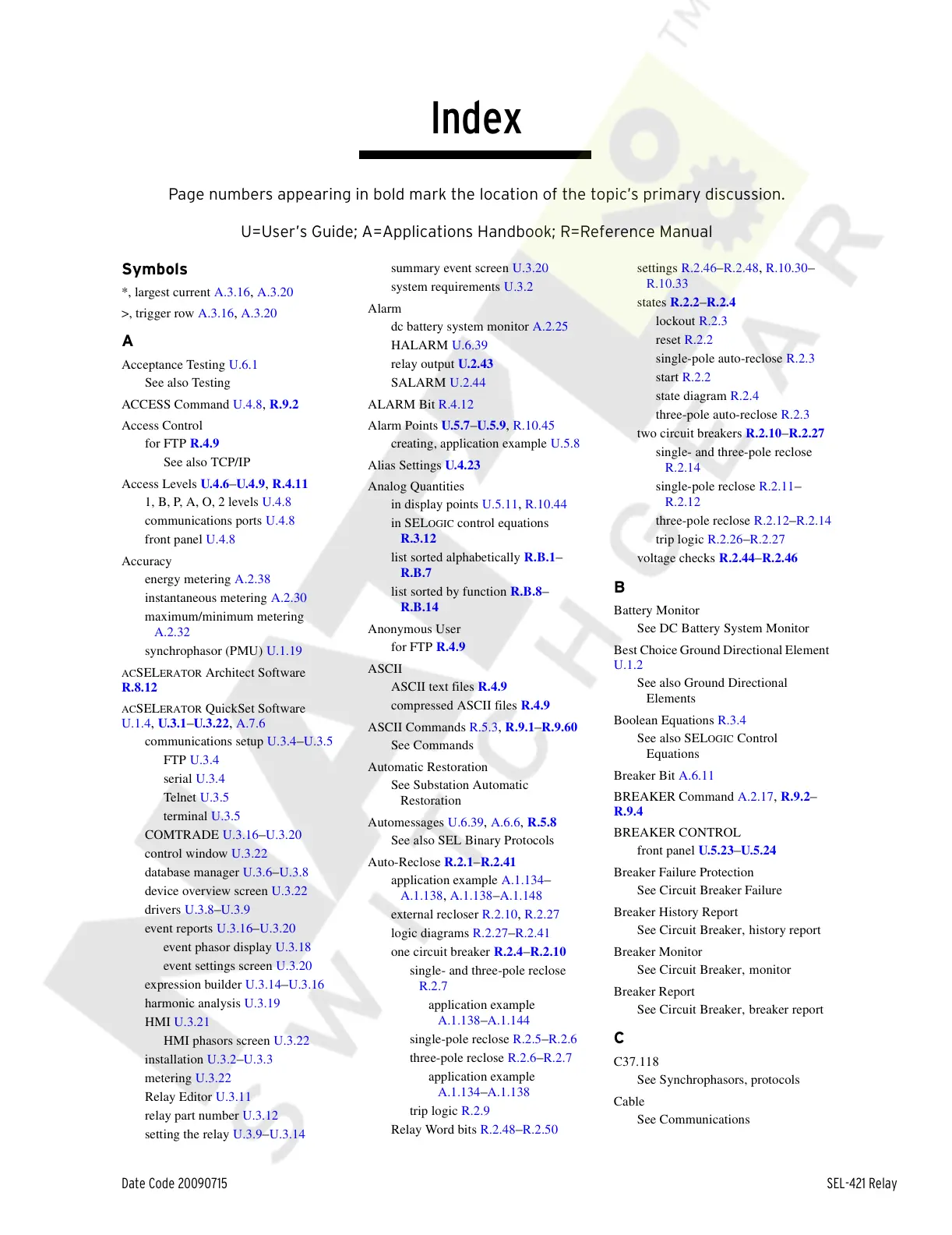 Date Code 20090715 SEL-421 Relay