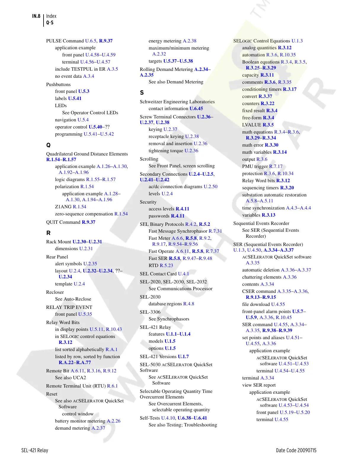 SEL-421 Relay Date Code 20090715