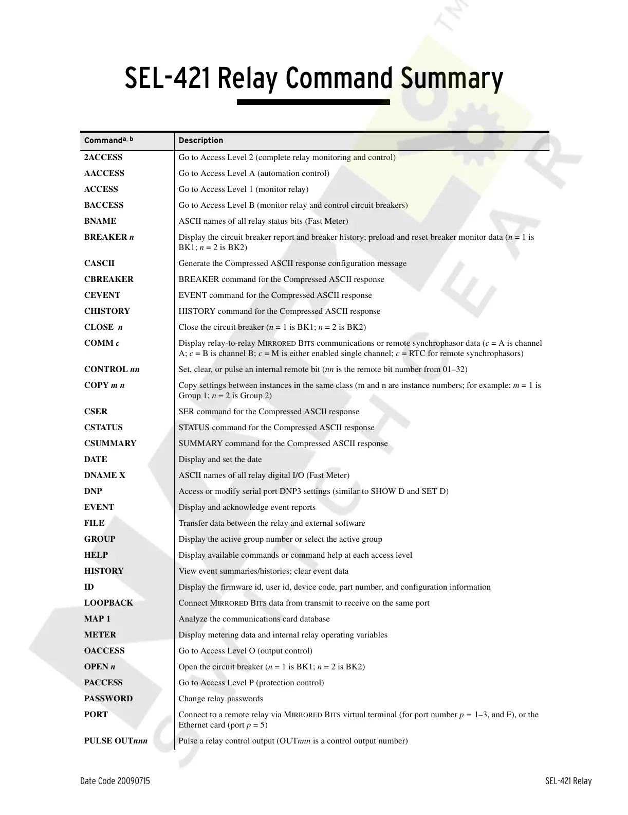 BACCESS Go to Access Level B (monitor relay and control circuit breakers)