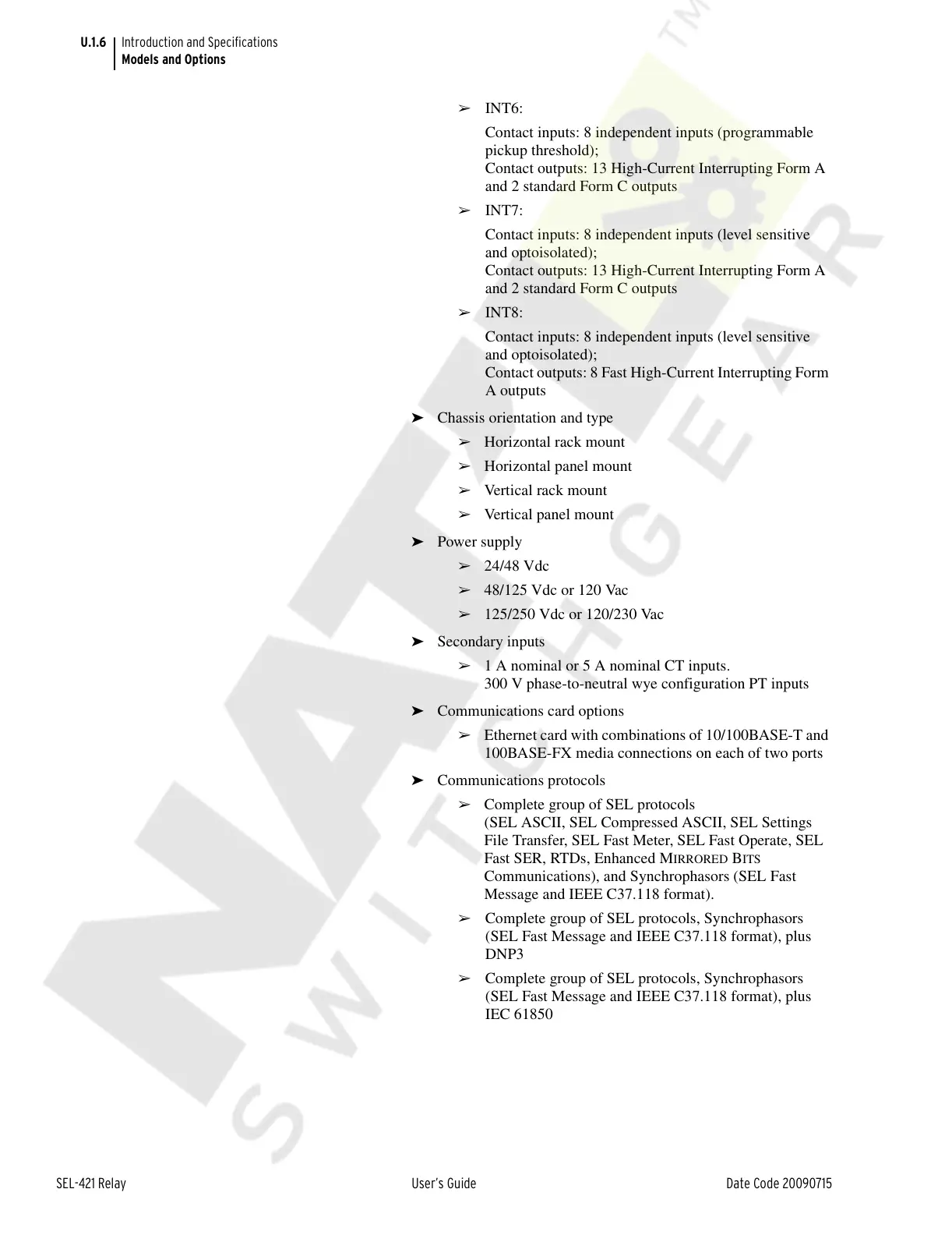 ➢ Complete group of SEL protocols
