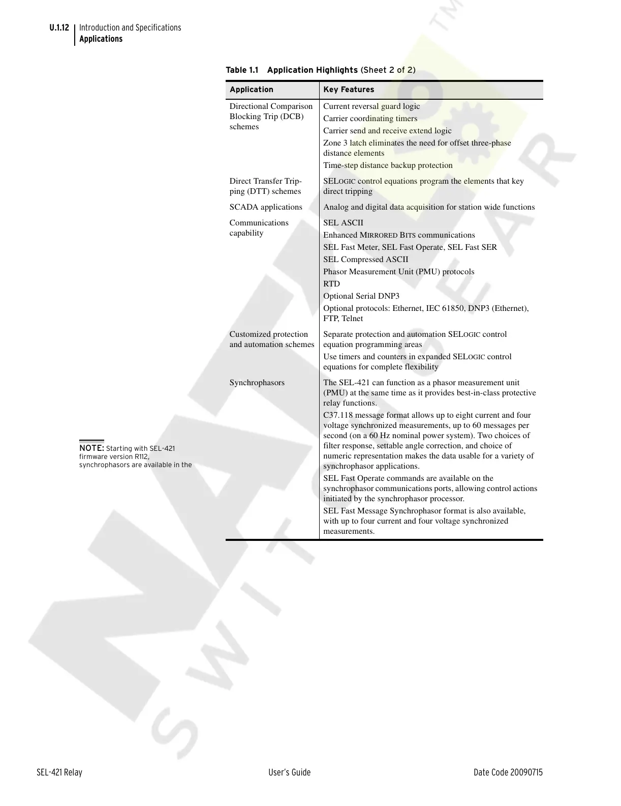 Table 1.1 Application Highlights (Sheet 2 of 2)