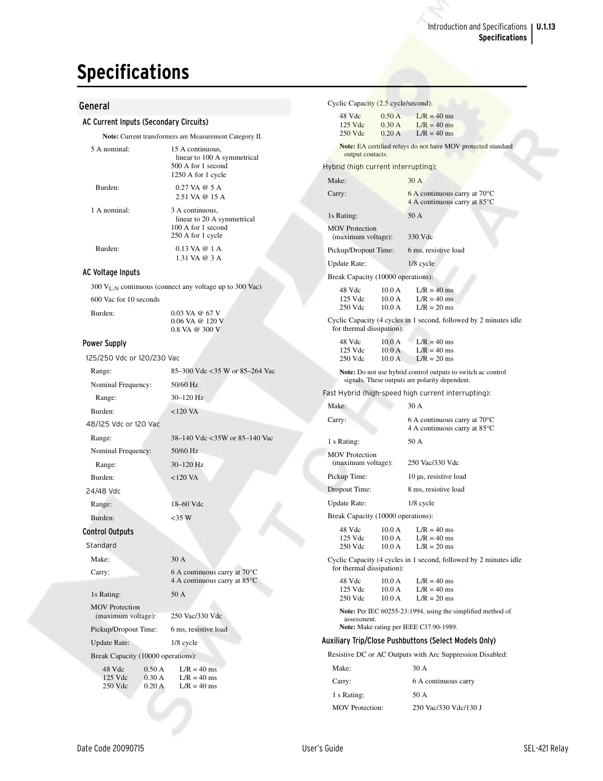 Date Code 20090715 User’s Guide SEL-421 Relay
