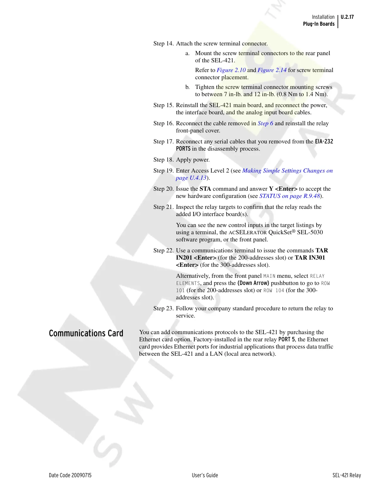 Step 15. Reinstall the SEL-421 main board, and reconnect the power,