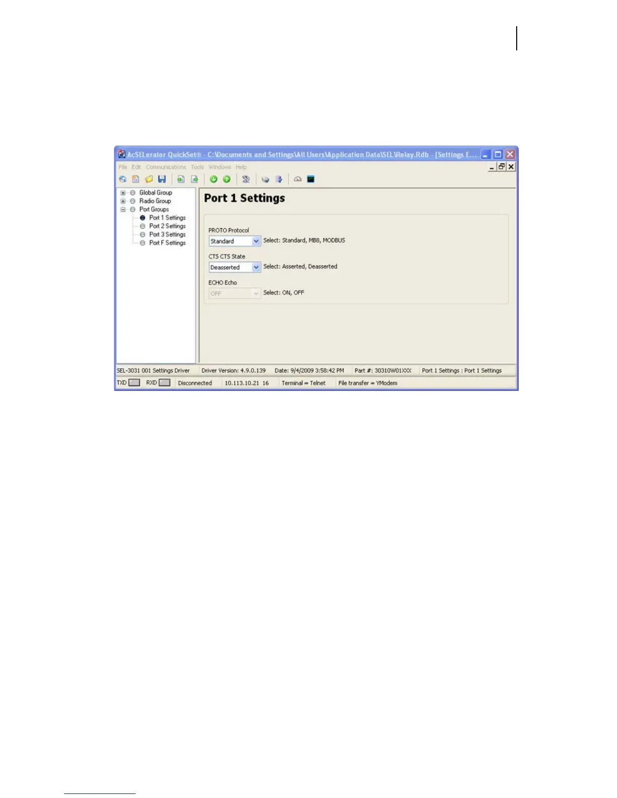 The SEL-3031 requires very few inputs for setting up the serial port to the correct