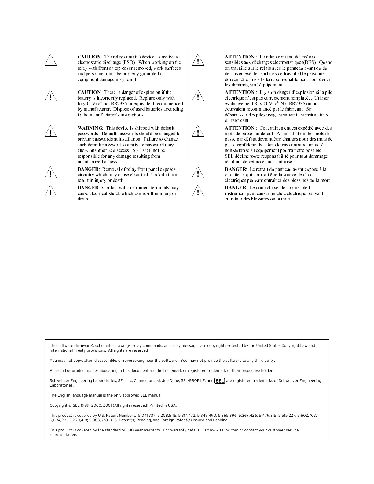 Copyright © SEL 1999, 2000, 2001 (All rights reserved) Printed in USA.