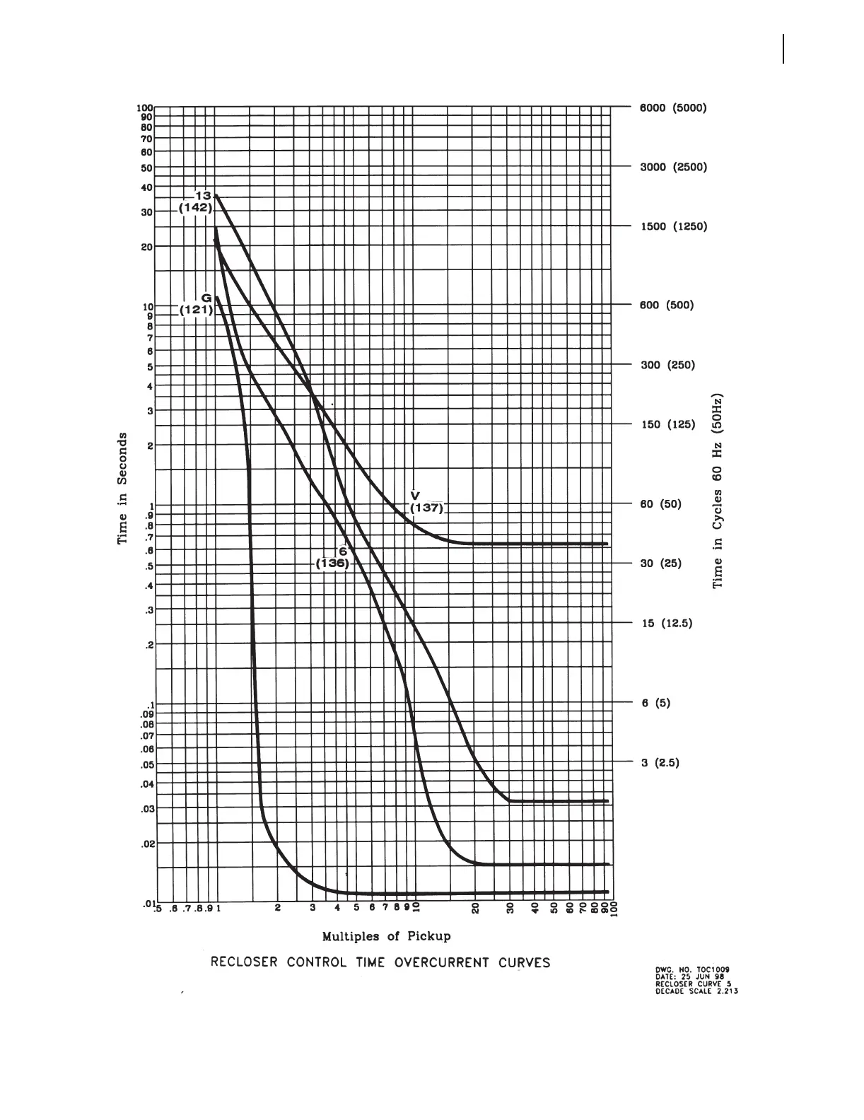 Figure 9.15 Recloser Control Response Curves G, V, 6, and 13
