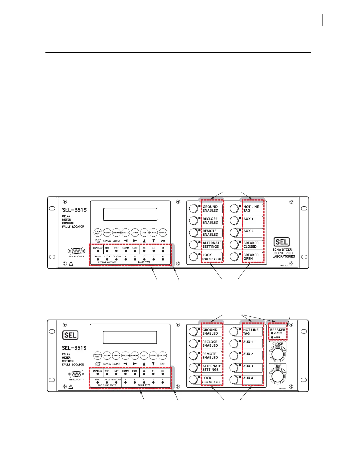 SEL-351S relays with front-panel user-configurable labels have three (or four,