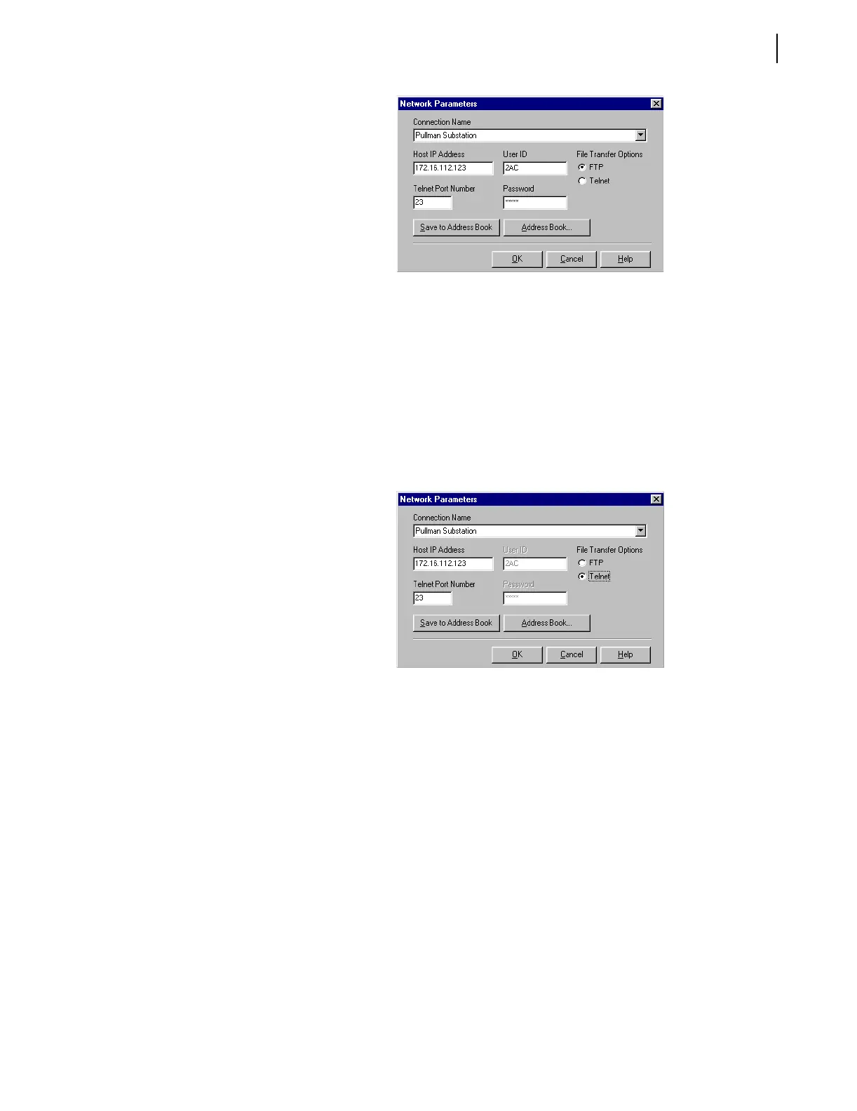 Click the Telnet option button in the Network Parameters dialog box (see